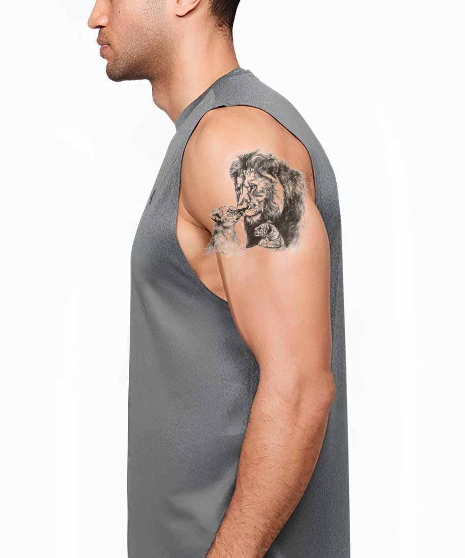 沉浸在这个黑灰色纹身设计所代表的力量与团结中。它以一只雄伟的墨水绘制的狮子为特色,象征着力量和勇气,巧妙地交织着家庭团结的主题。这个纹身是你不灭的家庭纽带的象征,以引人注目的黑灰色调呈现。