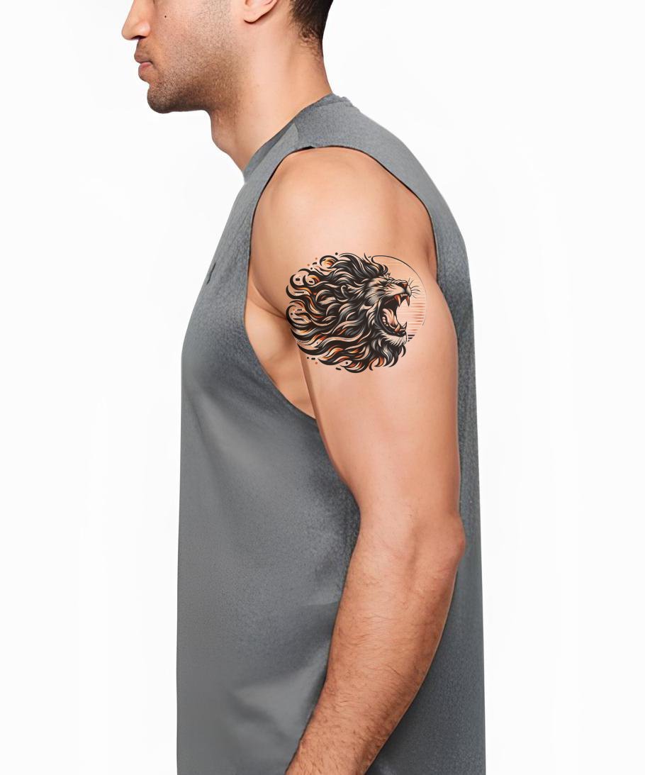 沉浸在这种插图纹身设计的lofi氛围中,设计中有一只雄伟的狮子,体现了纯粹的力量和皇家气息。发现丛林之王的咆哮本质,让它为你的身体纹身艺术增添强大的维度。真正的威严与力量!
