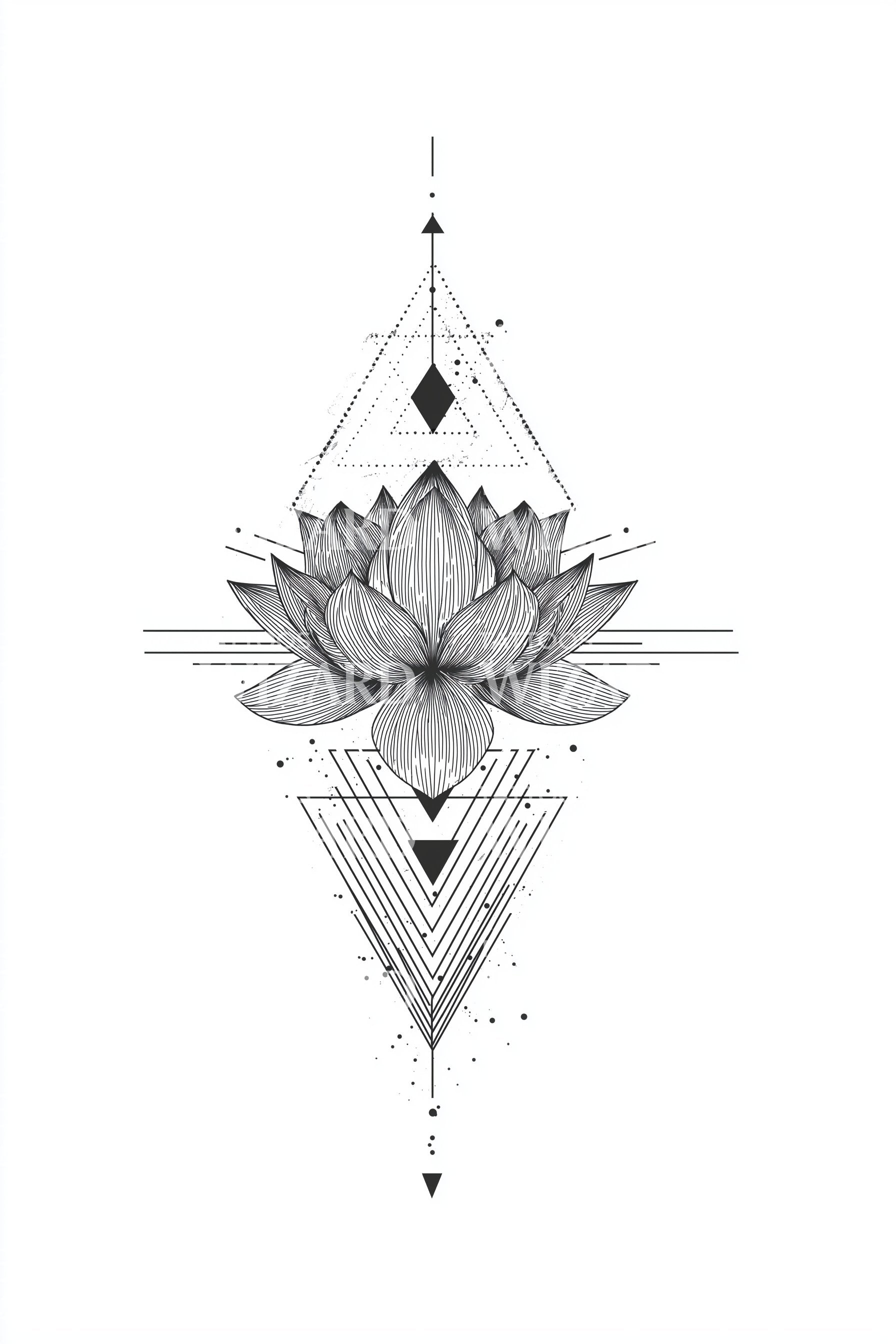 拥抱你个性的神圣面向,这款复杂的纹身设计将几何美学与细线艺术完美结合,打造出一个迷人的莲花,镶嵌在钻石轮廓内。这件装饰杰作无缝融合了对称与灵性,为你的肌肤注入独特的气质。