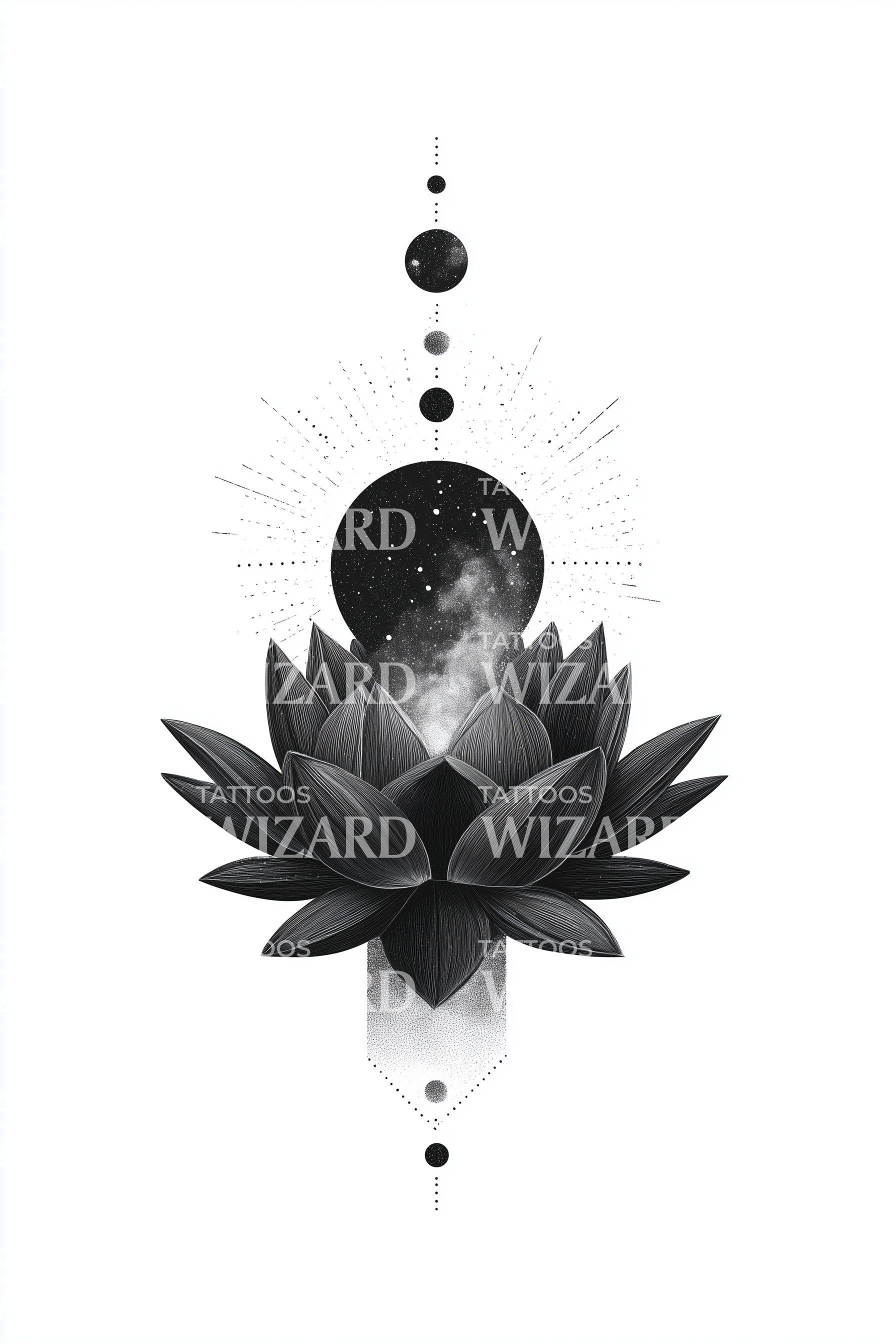 沉浸于这款黑灰纹身设计的神秘魅力中。灵感源自日食的暗影,它优雅地展现了莲花的宁静。这款纹身象征着黑暗中的觉悟,成为一件深刻而强大的艺术作品。