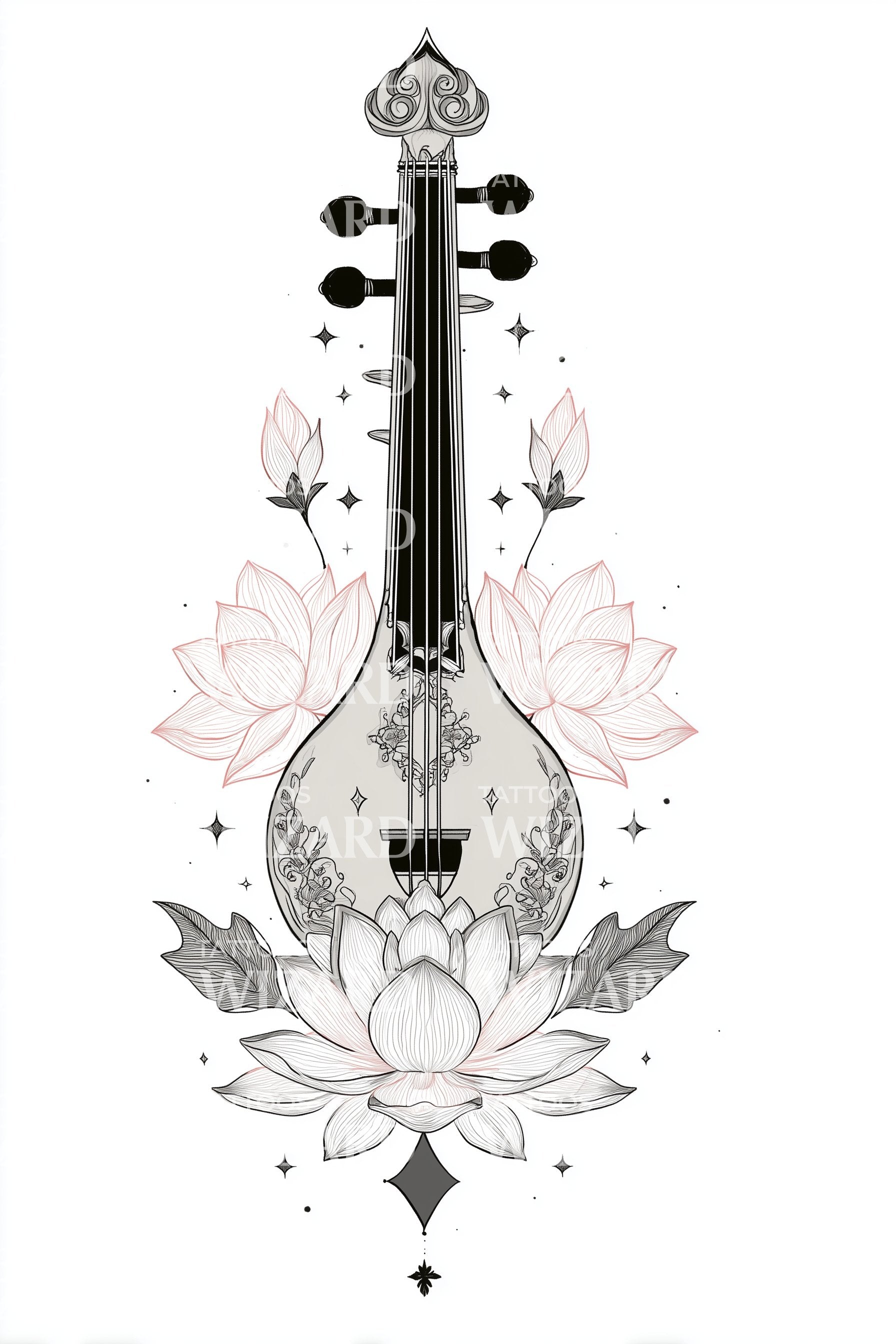 莲花琵琶装饰纹身设计