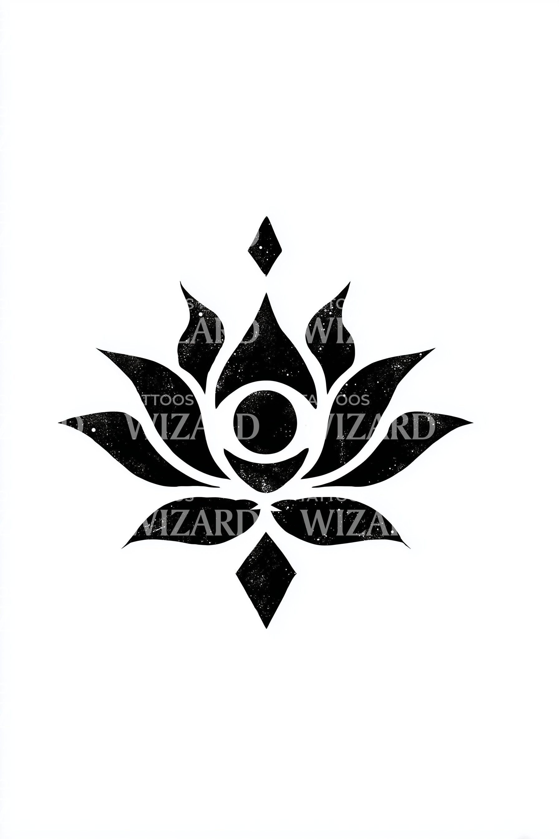 探索这款极简黑色纹身设计的宁静之美。莲花作为一个坚实而标志性的符号,象征着精神觉醒。简洁而大胆,散发着深刻的宇宙能量。非常适合那些追求深远而含蓄纹身表达的人。