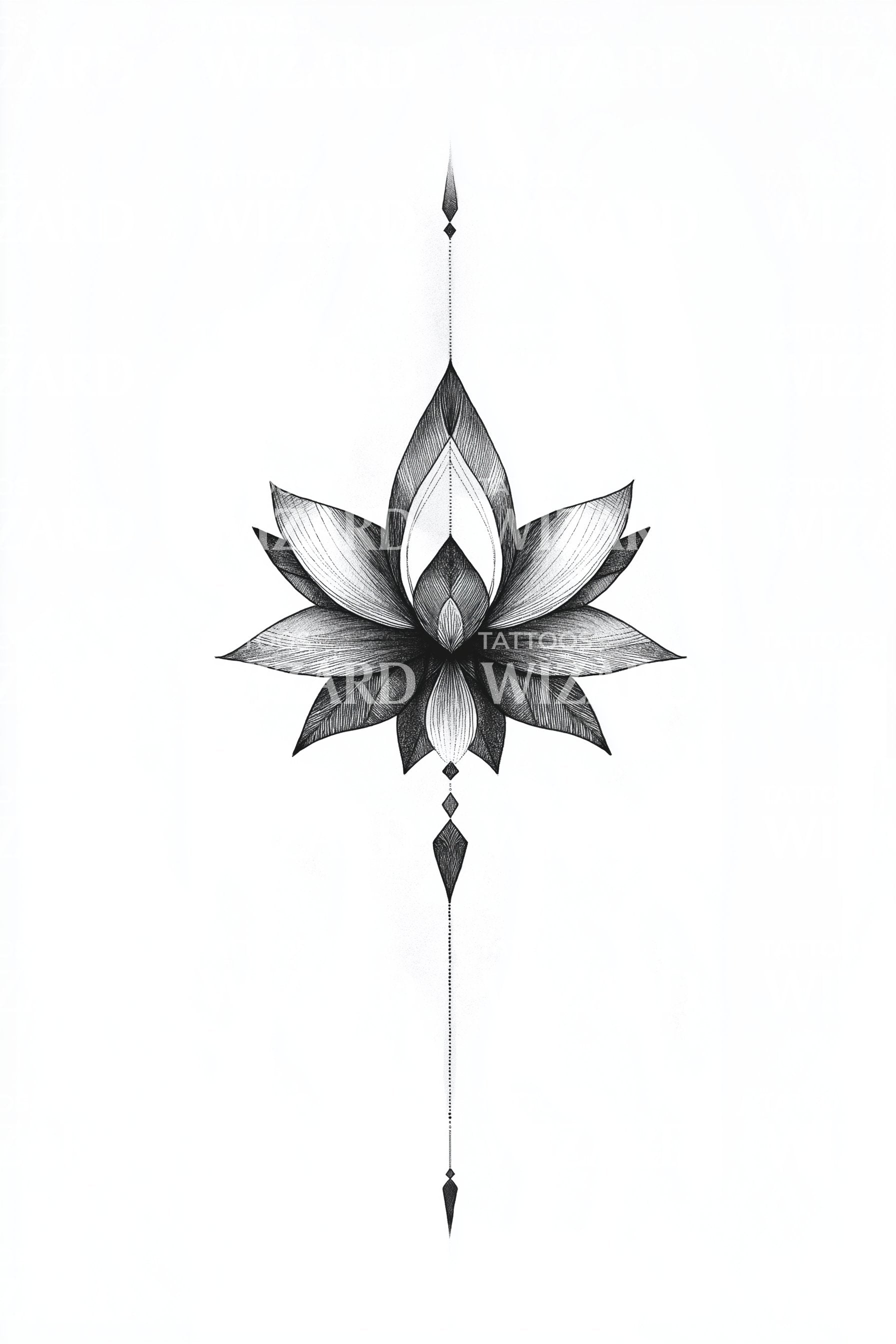 这款精致的细线纹身设计通过莲花与箭矢的迷人交织,融合了灵性与对称。完美平衡的线条展现出惊人的细节,暗示着一段精神之旅。它是美丽、力量与启迪的象征,理想适合永恒纹身爱好者。