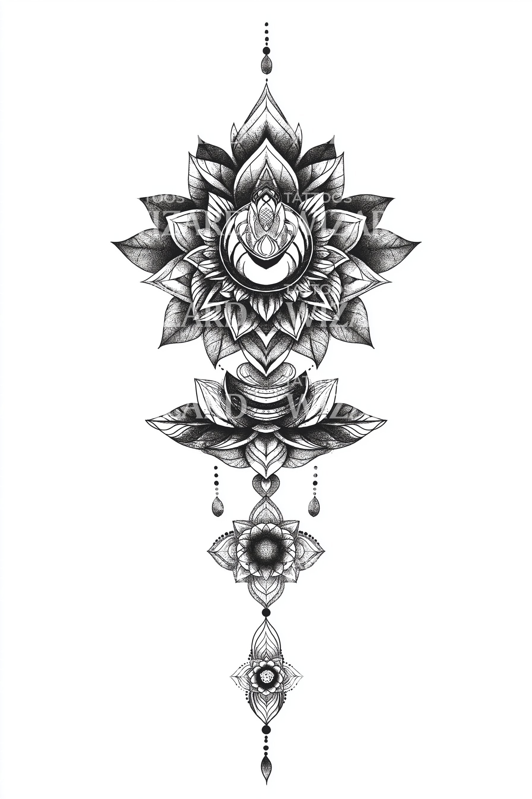发现这款装饰性纹身设计中的精神优雅。以神圣的莲花为特色,它象征着精神成长与智慧。这件图腾灵感的艺术作品展示了复杂的花卉图案,创造出自然华丽与个人蜕变的壮丽象征。非常适合那些追求有意义身体装饰的人。