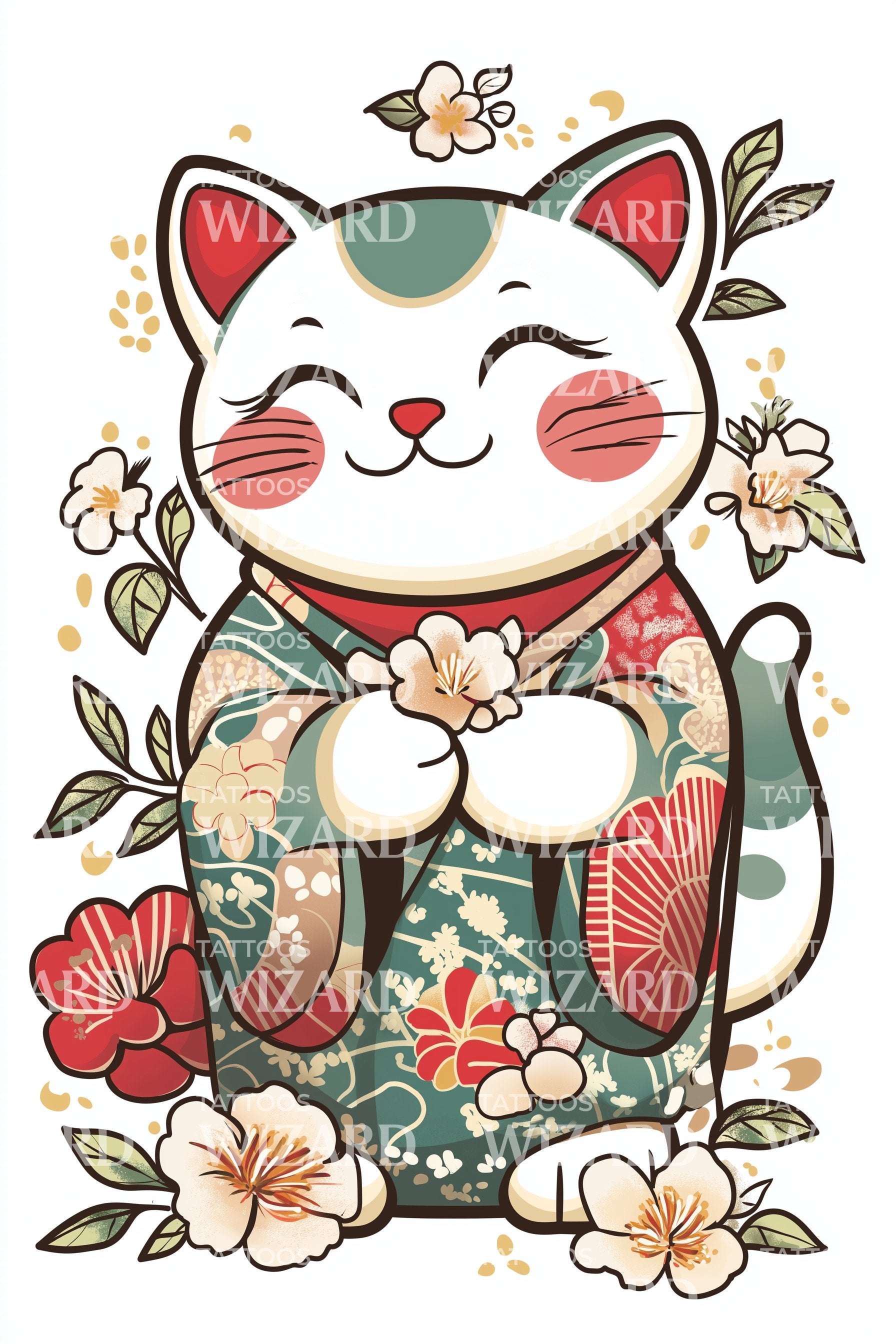 释放大胆而充满活力的幸运感,这款新潮招财猫纹身设计完美呼应了日本传统,生动展现了蕴含幸运的花卉魅力,而猫的鲜明描绘象征着繁荣。这款纹身是一种大胆的标志,将时尚与古老象征完美融合。