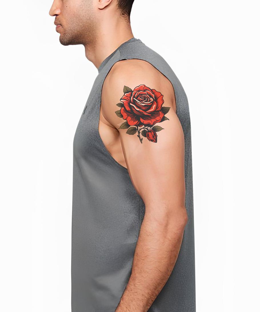 沉浸在这个复古丰盈玫瑰纹身设计的美丽中。它鲜艳的红色体现了激情和爱,使其成为一件永恒的作品。这个花卉设计捕捉了纹身艺术的传统精髓,为你的肌肤增添了丰富而经典的触感。非常适合所有花卉和复古墨水爱好者。