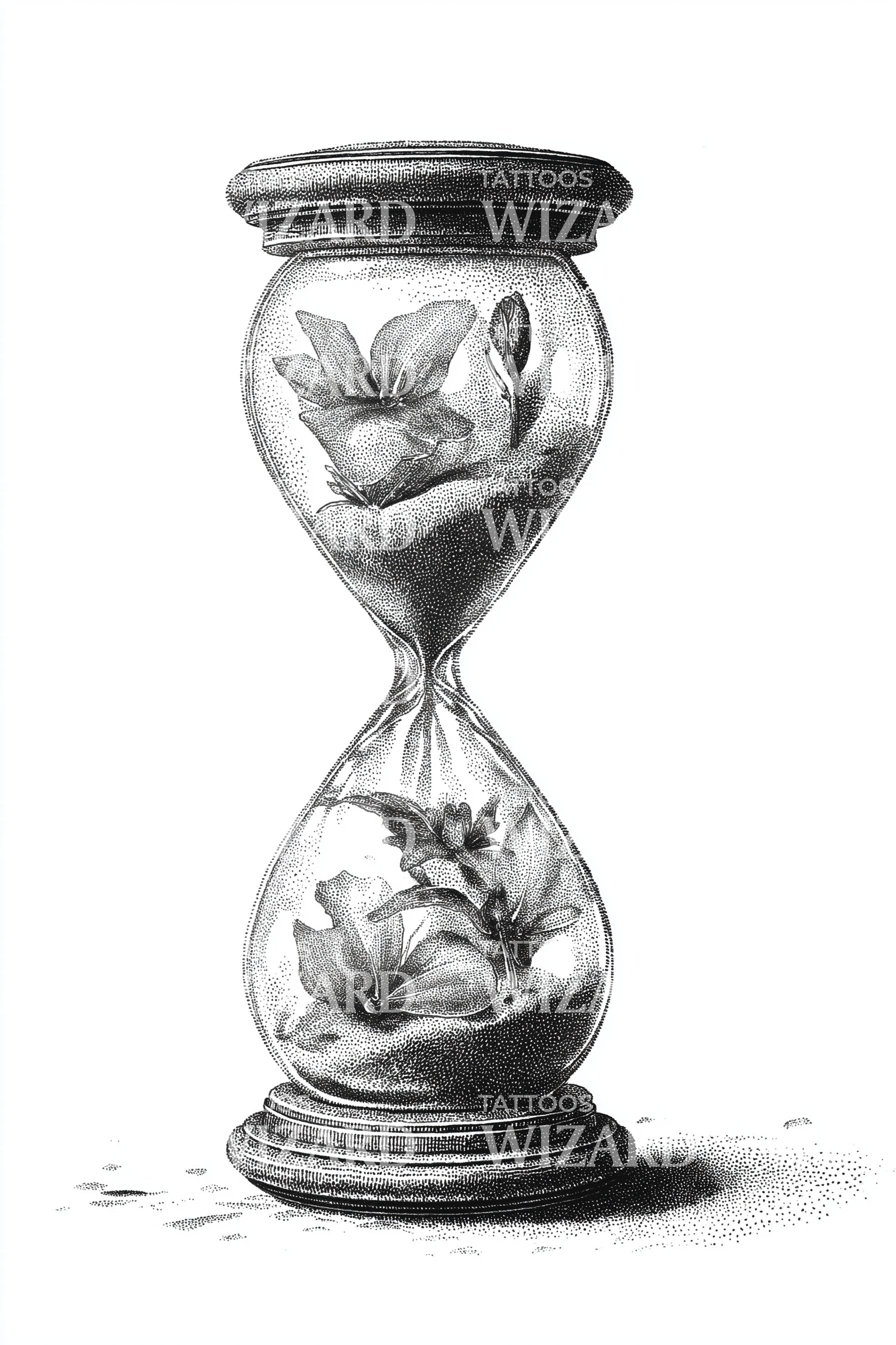 通过我们高端的黑灰纹身设计,发现无常与美丽。精心打造,巧妙地将沙漏符号与木兰花的优雅交织在一起,强调时间的概念。它融合了永恒的优雅与精致的细节,呈现出生命短暂瞬间的惊艳体现。