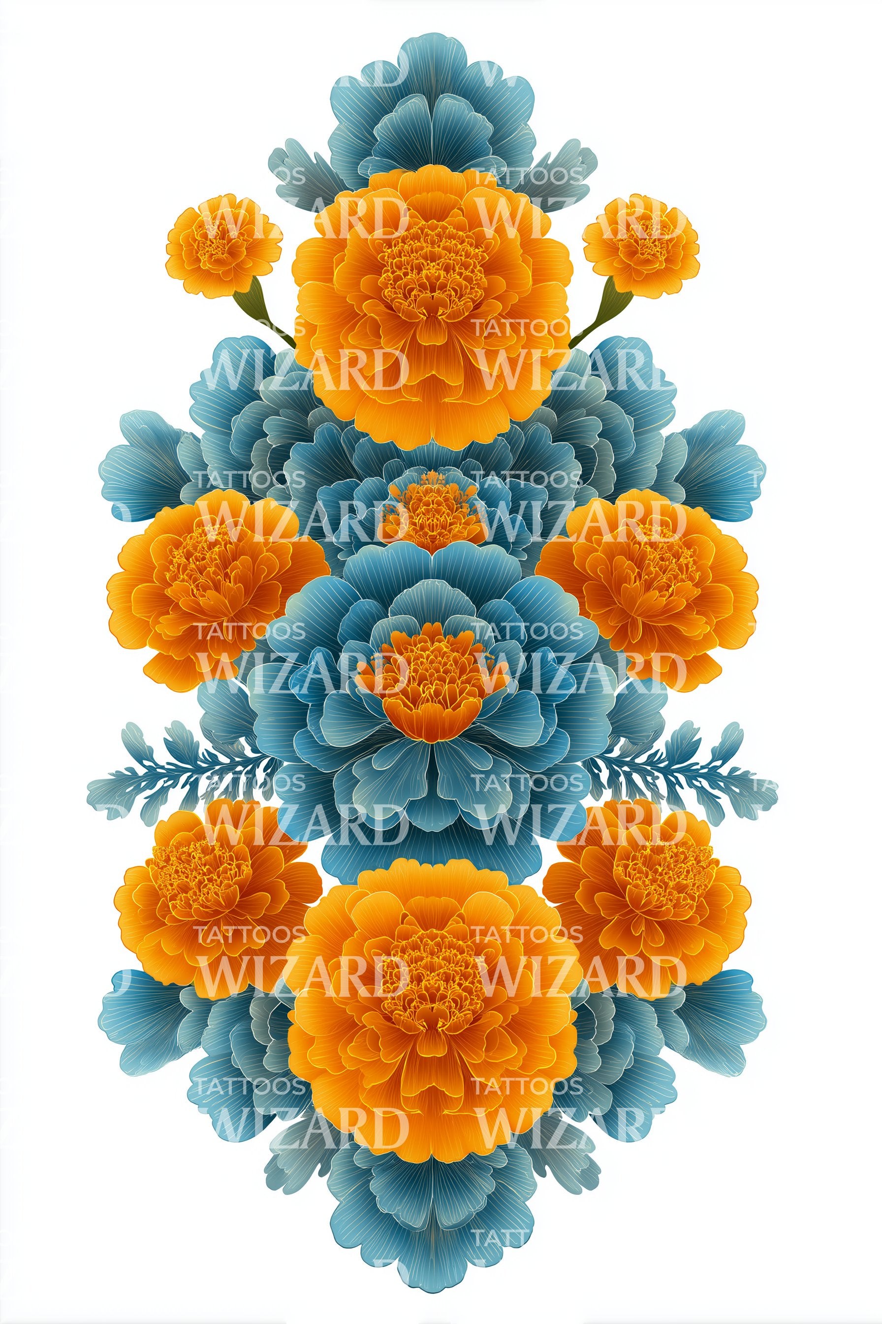 万寿菊树形叠加纹身设计