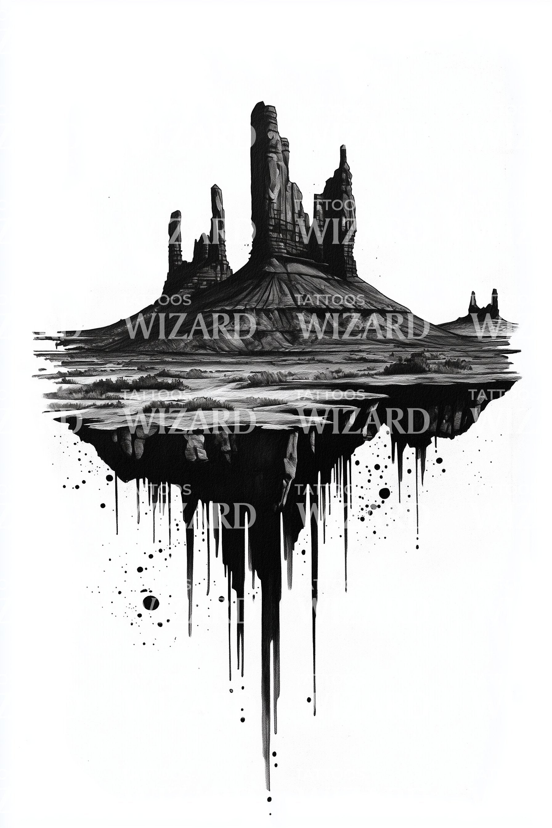 Desert Mesa Drip Silhouette Tattoo Design