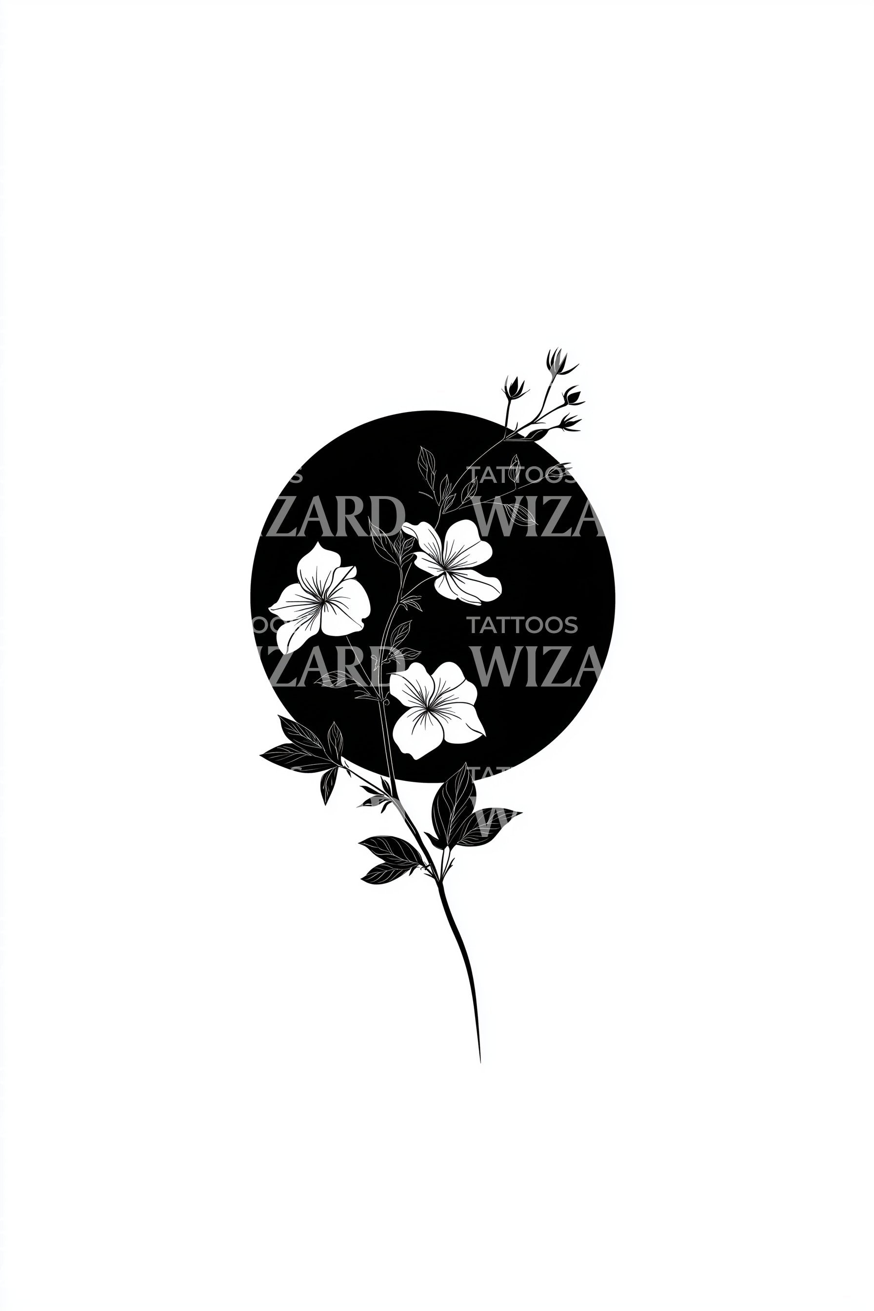 这款极简纹身设计完美融合了精致花朵的魅力与日食的戏剧感。虽小巧,却形成鲜明对比,展现出复杂的花卉细节。非常适合追求低调且富有深刻象征意义的人士。