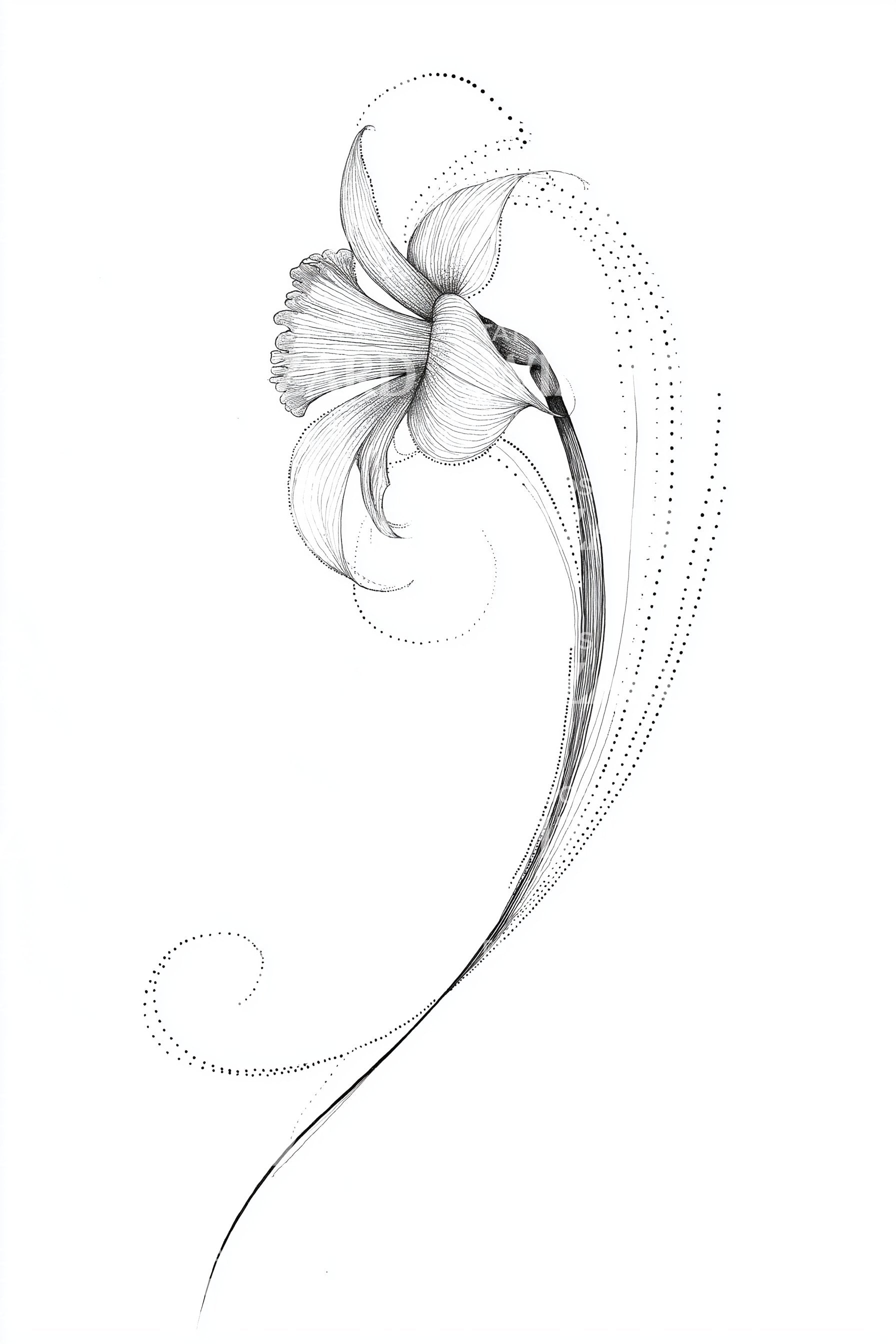这款素描纹身设计融合了迷雾的空灵神秘与花蕾的细腻生长。作为一件抽象创作,它轻松传达了自由流动的精神。非常适合欣赏细腻艺术并希望在肌肤上展现独特话题之作的你。