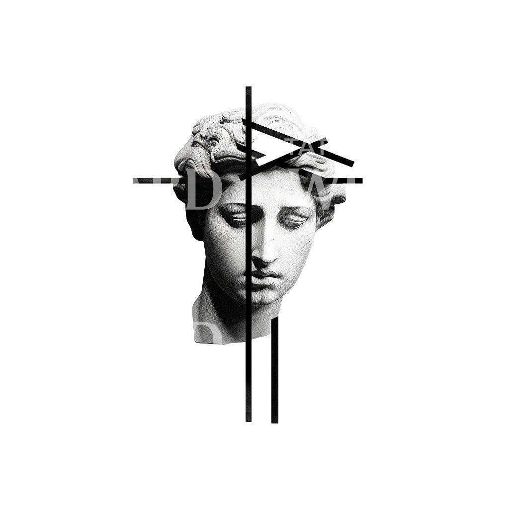 沉浸在这款现代希腊雕像纹身设计的美丽中。这件原创的黑白微现实主义作品完美地体现了现代雕塑的美学精髓。非常适合欣赏经典与现代身体艺术独特融合的挑剔男士。