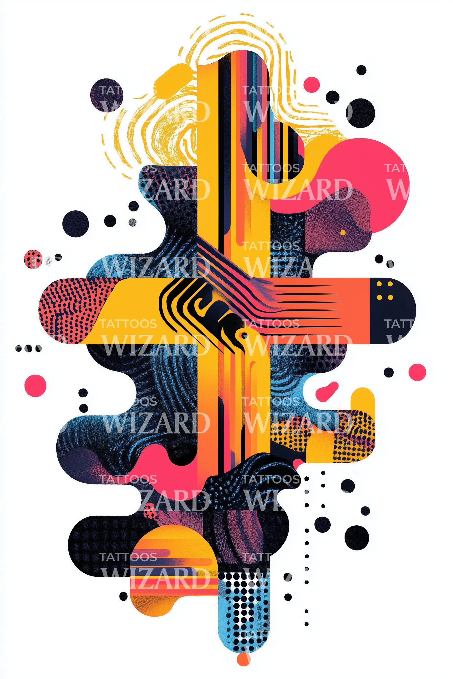 用这款新潮纹身设计,以俏皮的方式表达你的信仰。它巧妙地将抽象形状组合成一个模块化的十字架,展现了坚定的信念与创造力。其非传统的设计大胆彰显个性,同时尊重传统象征意义。