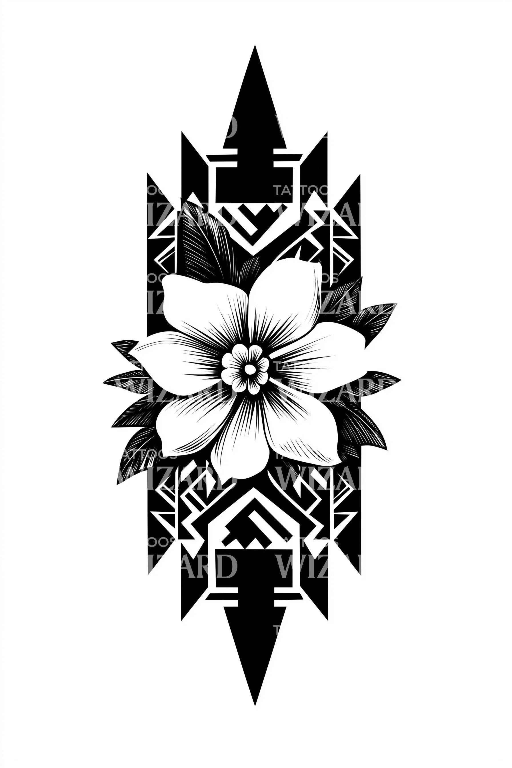 用我们优雅的单色花卉纹身设计装饰您的肌肤。它以垂直流动的形式展现,融合了精致的花瓣与装饰元素。此设计以大胆而单一的色调捕捉了大自然花朵的永恒之美,证明了简约确实是优雅的巅峰。