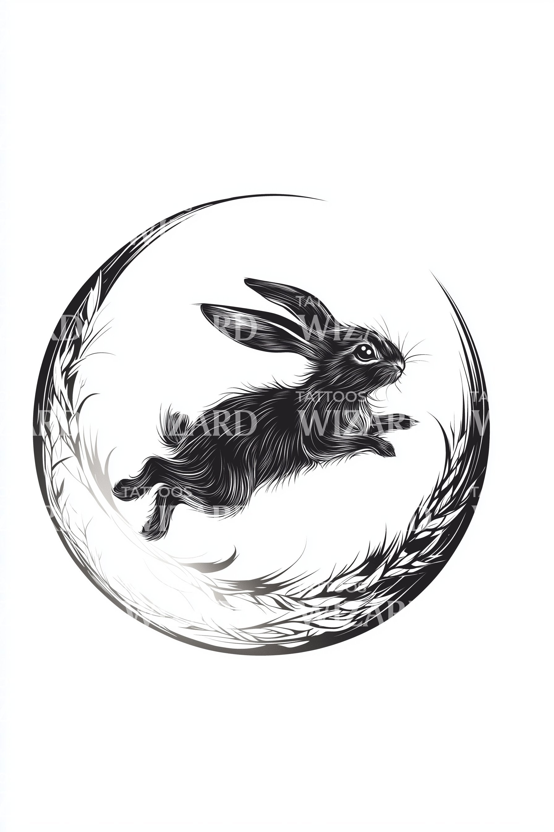 新月兔子纹身设计