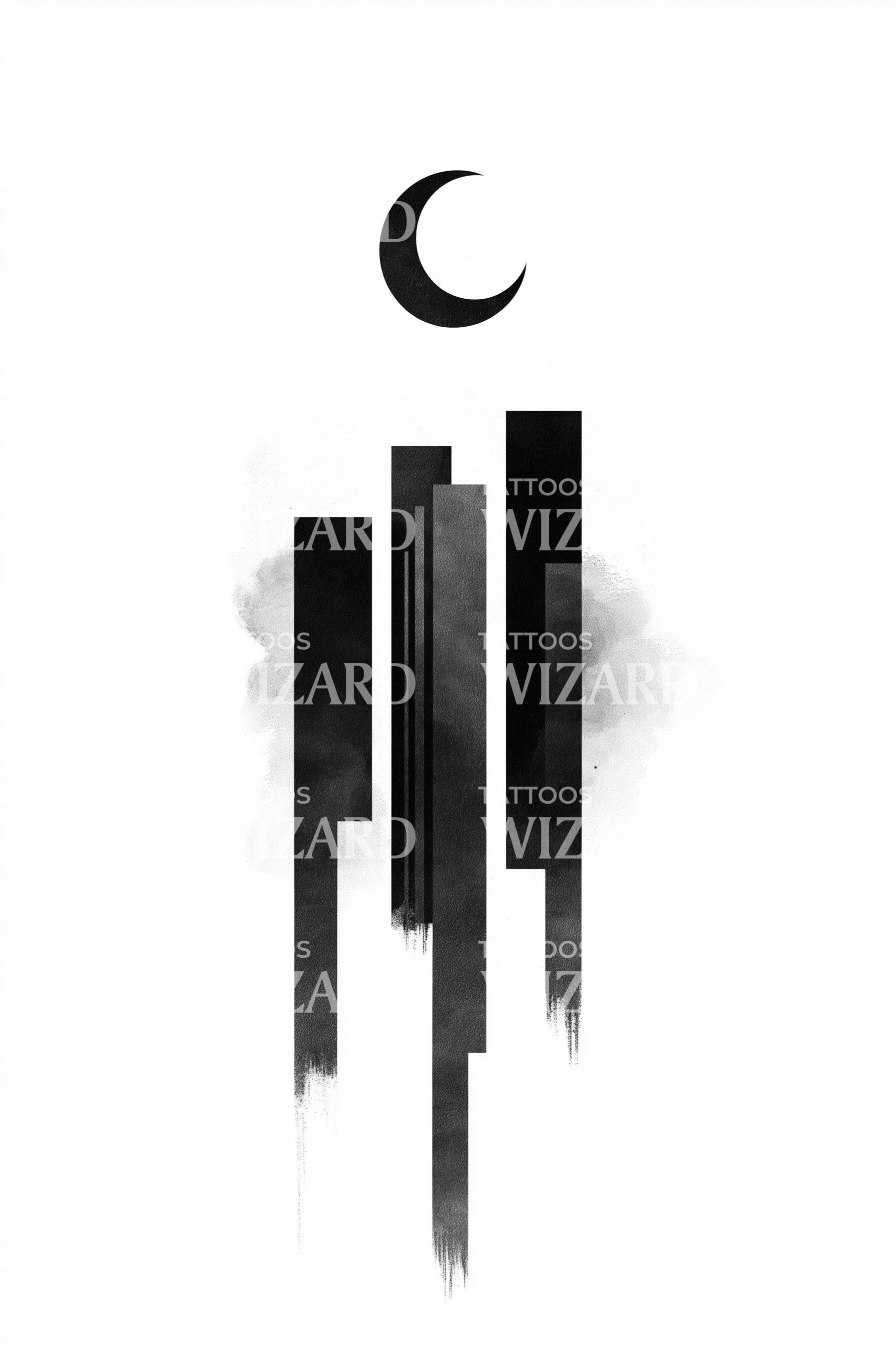 月光抽象塔纹身设计