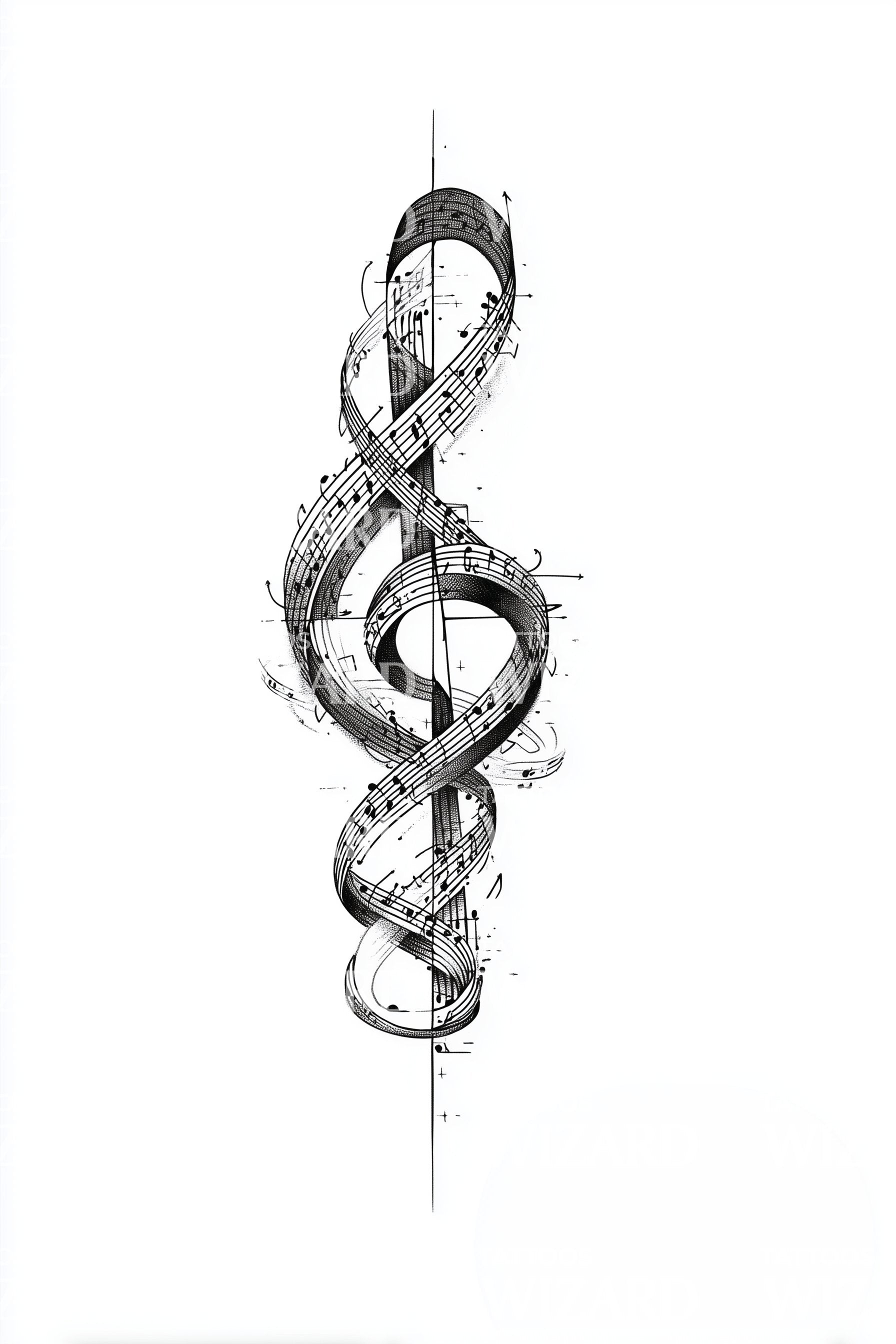 Watercolor treble clef unfurls as a ribbon of staff lines, notes spiraling around a fine vertical axis, misted with delicate washes. Symbol of melody as lifeline, it binds rhythm to breath and art to heart. Wearing it feels like calm cadence, steady courage, continuous creative flow and harmony.