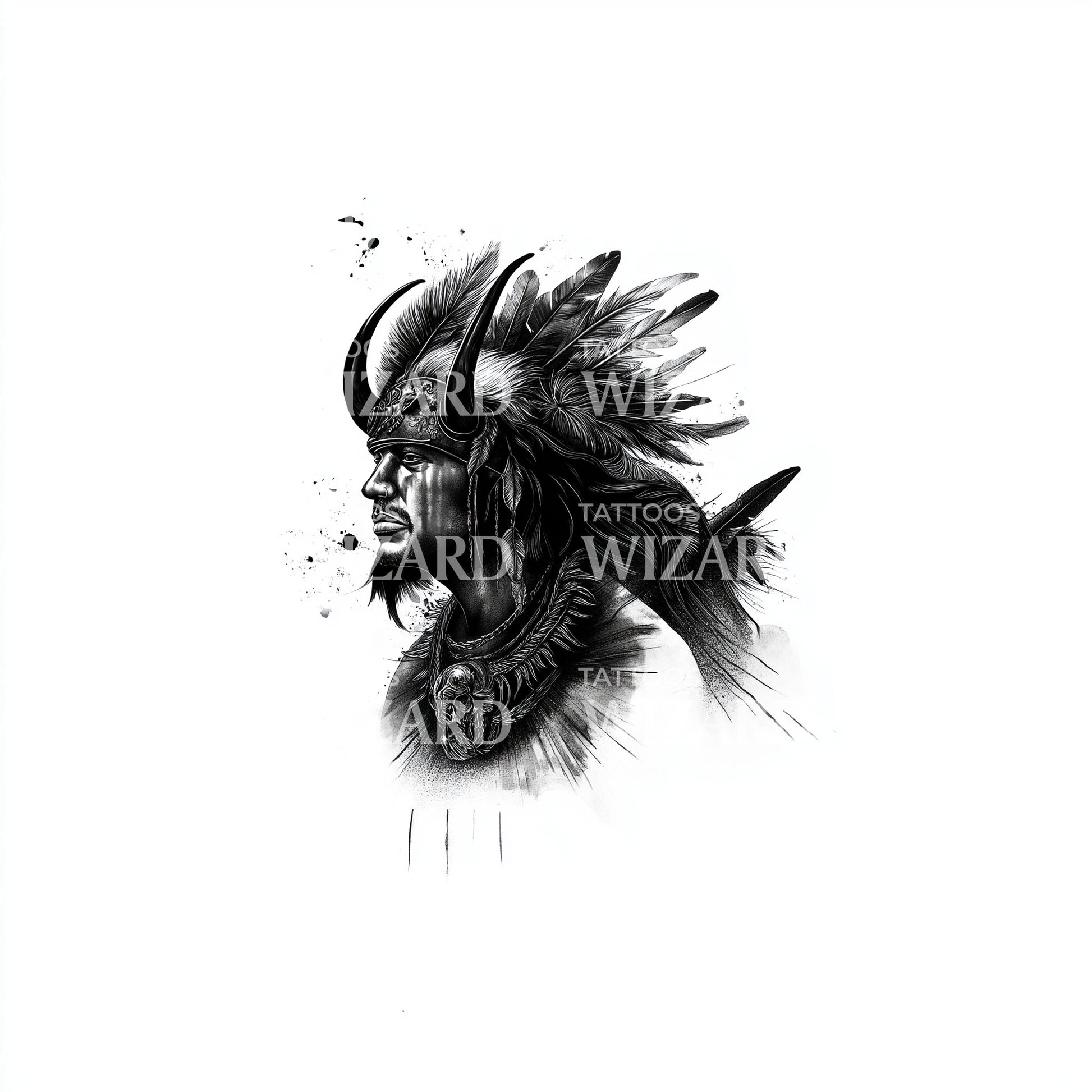 沉浸在历史的勇气中,这款黑灰色的纹身设计巧妙地体现了一位土著战士的勇敢,通过精致的羽毛细节展现出来。它是无畏决心和力量的见证,完美地与真正战士的精神相呼应。非常适合那些欣赏土著历史美学的人。