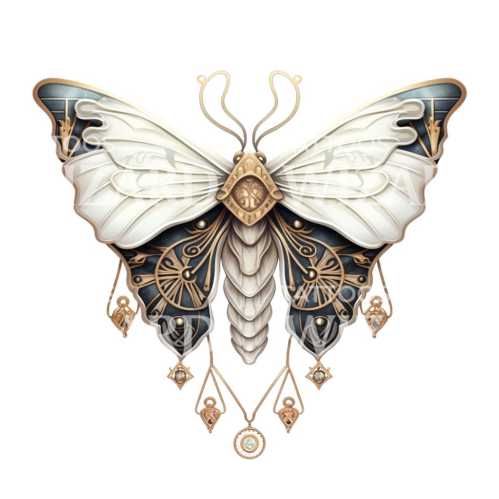 沉浸在复古魅力中,欣赏我们的新传统蛾/蝴蝶纹身设计。融合了艺术装饰的精致与装饰性的风格,这一设计展现了传统与现代之间的绝妙对比。用这款精心制作的纹身设计散发出大胆的声明。