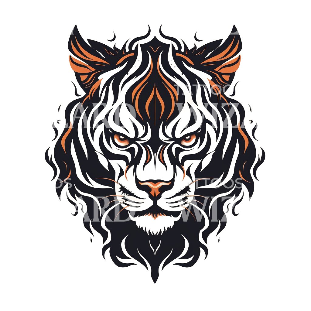 沉浸在老派魅力中,欣赏我们的巨型猫纹身设计。这个凶猛的部落图案展示了一只雄伟的老虎,完美结合了复古风格与原始力量。对于那些欣赏经典风格与狂野边缘的人来说,这是一件卓越的艺术作品。