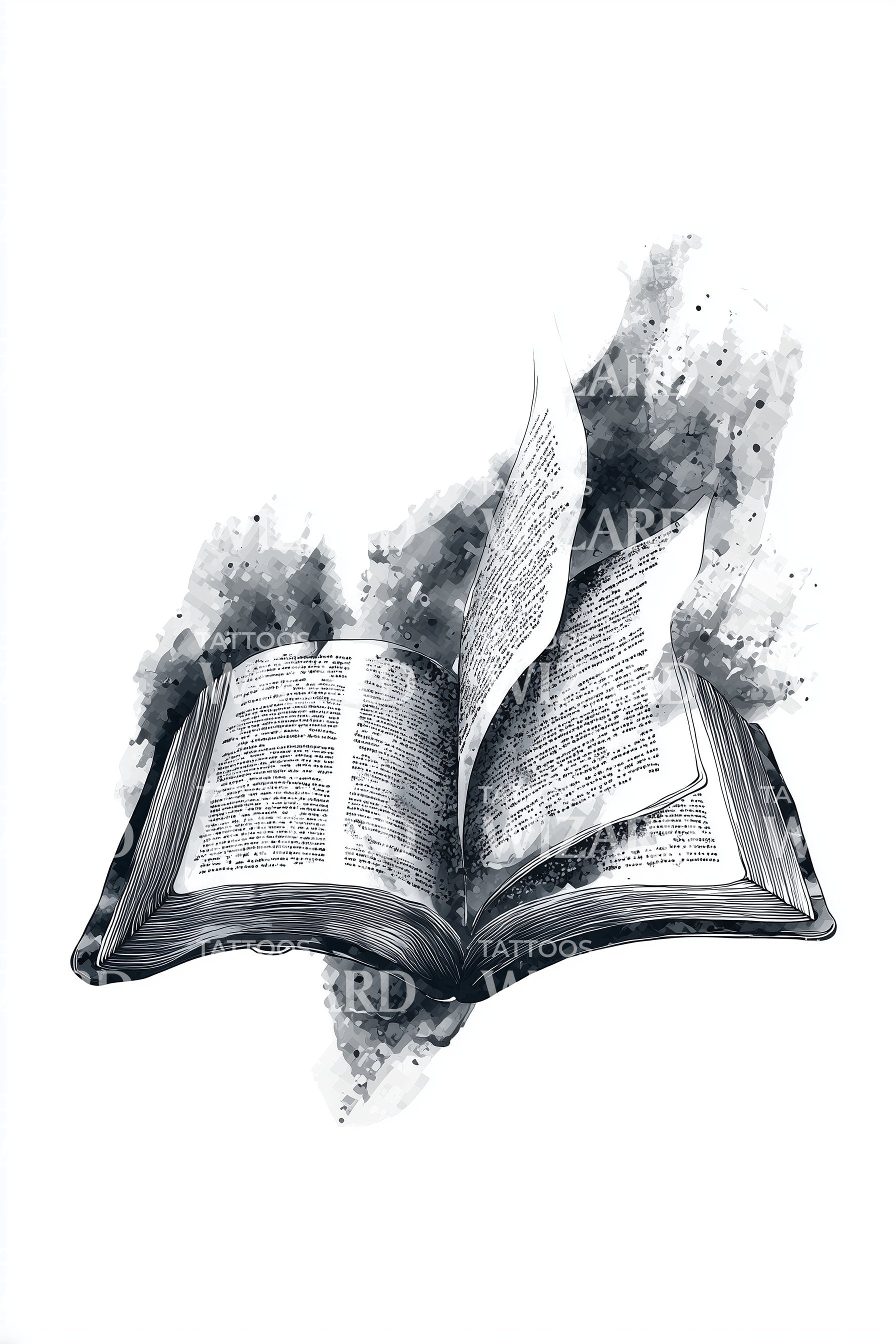 沉浸于这款素描纹身设计带来的持久启迪。它精美地展现了一本象征智慧与知识的打开的书。设计以细腻的墨线勾勒,令人注目且令人敬佩,体现了墨水、艺术与智慧之间深刻的联系。