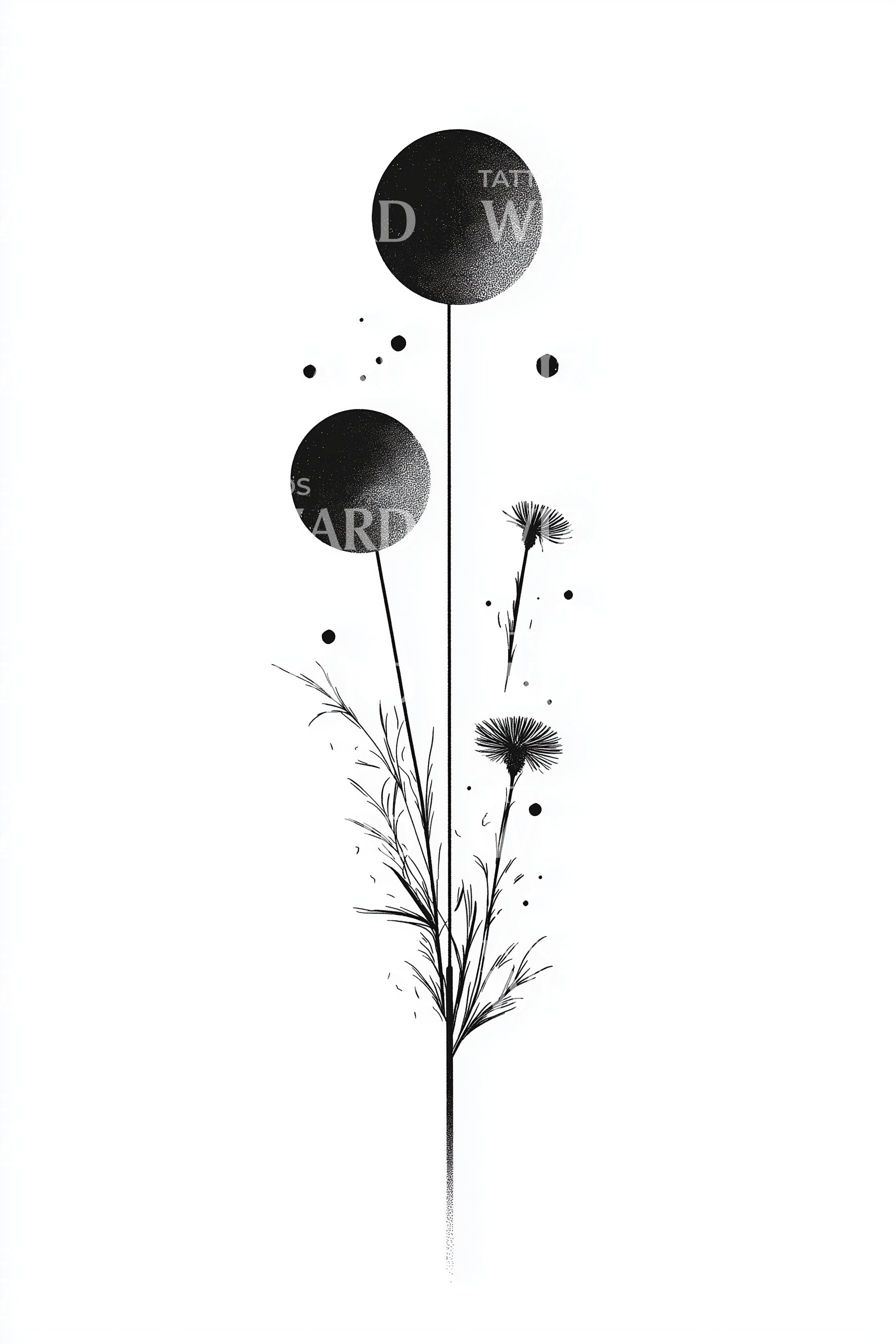 释放你的灵魂,这款几何纹身设计完美融合了宇宙星球与野花。黑色纹身风格营造出优雅的对比,展现自然之美的独特视角。非常适合欣赏现实野性与神秘宇宙和谐融合的人士。