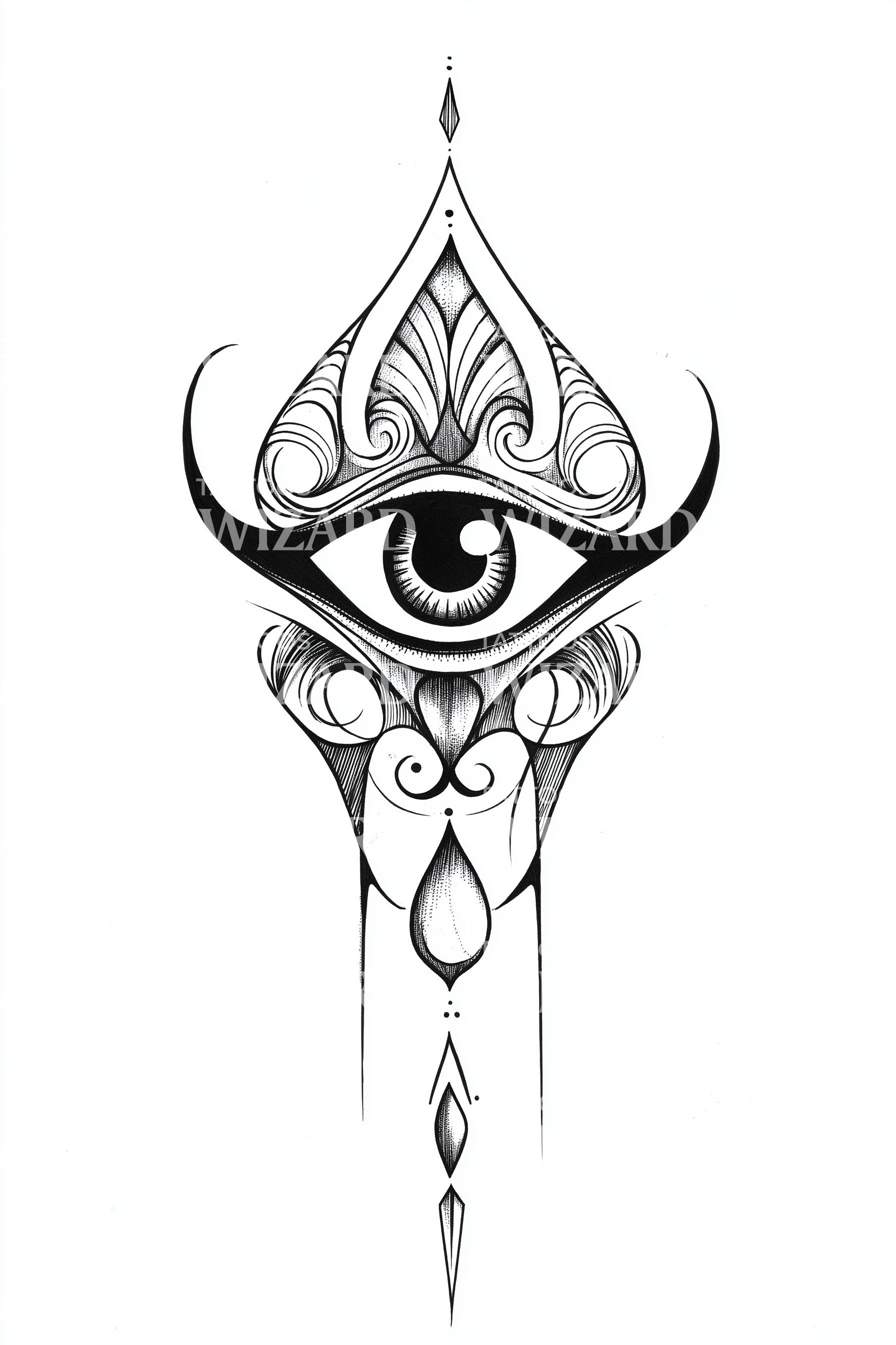 用这款华丽的眼睛纹身设计装饰你的肌肤。象征全视之眼,它融合了神秘与装饰元素,打造出一件既迷人又神秘的艺术品。这不仅仅是一枚纹身,更是你独特故事的象征。