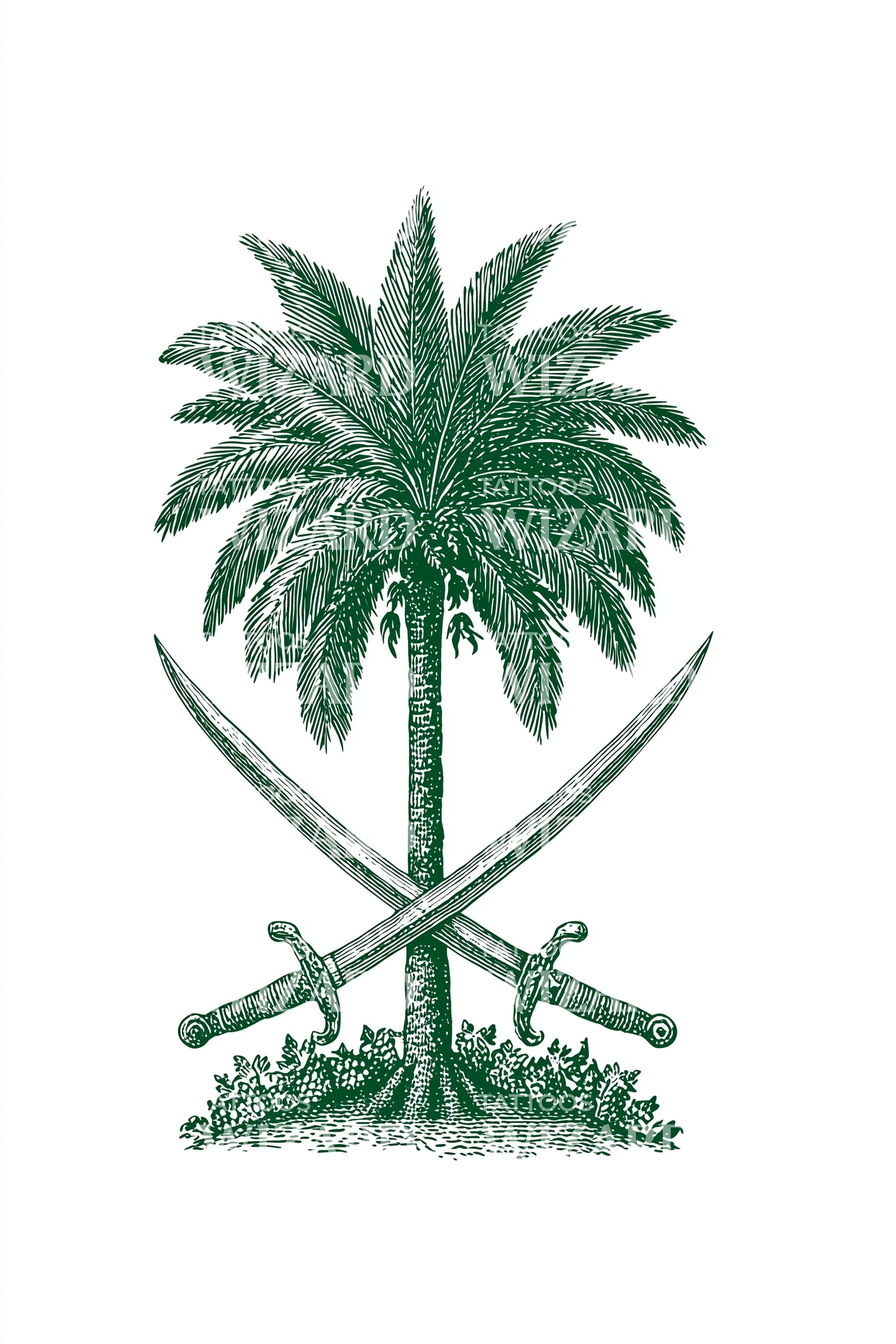 沙特棕榈与剑纹身设计