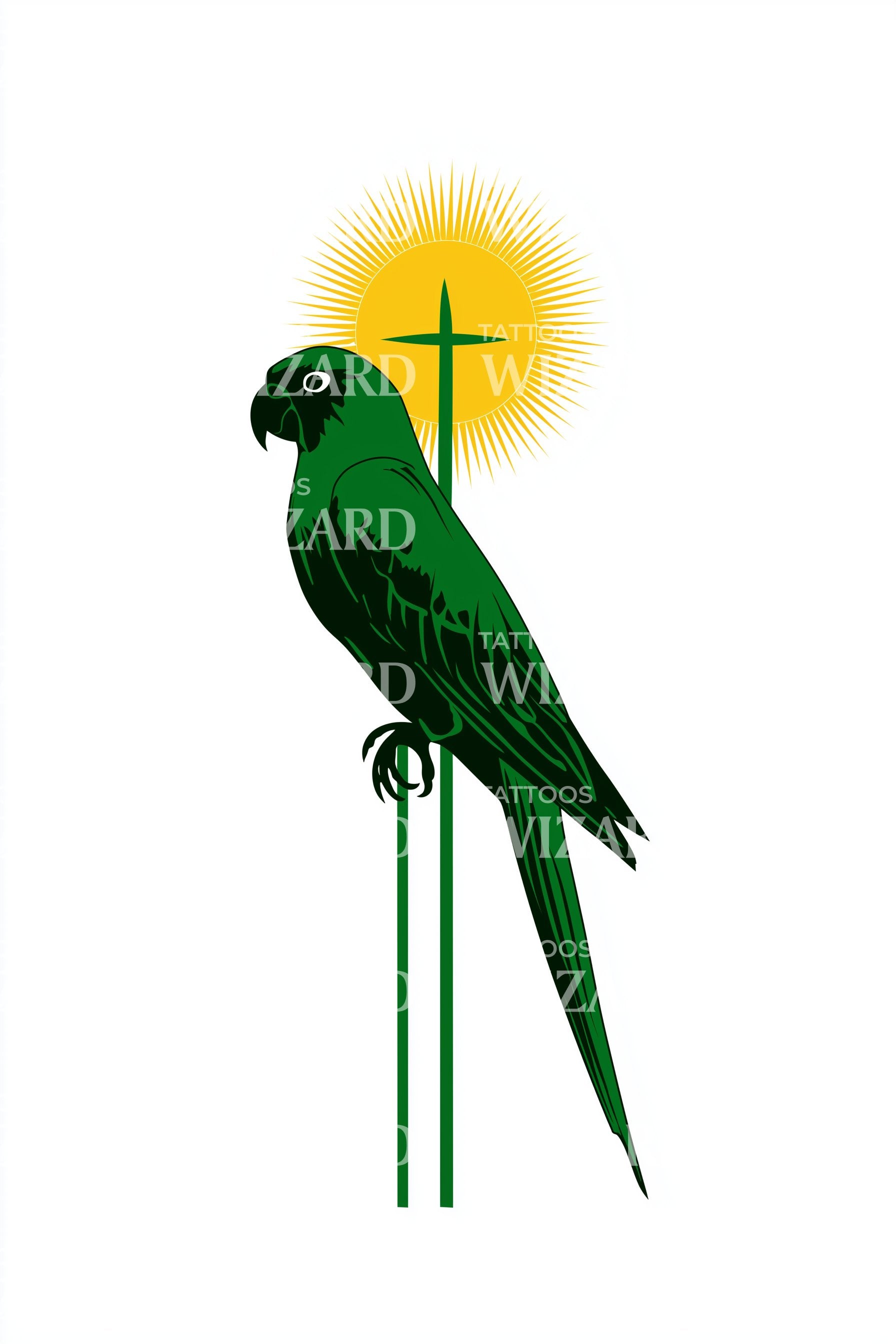 极简线条描绘了一只端庄的鹦鹉,栖息在一个小岛上,背景是柔和的加勒比日出。微妙的光环环绕着鸟儿,象征着指引与自由。干净的负空间、细腻的弧线和柔和的渐变唤起盐空气、温暖的光线和旅行的渴望——完美诠释低调的热带象征与冒险精神。