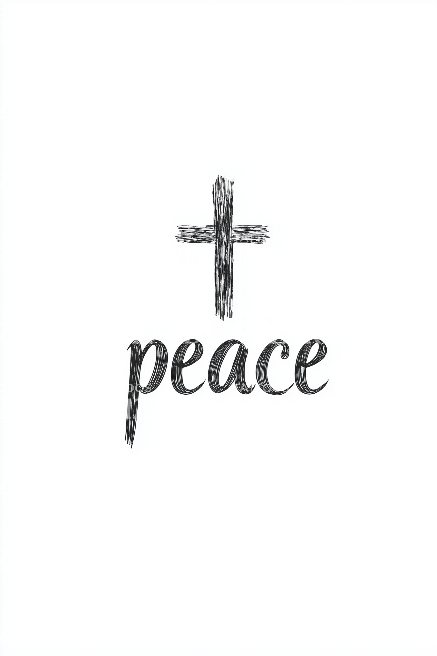 毛笔字体和平十字纹身设计