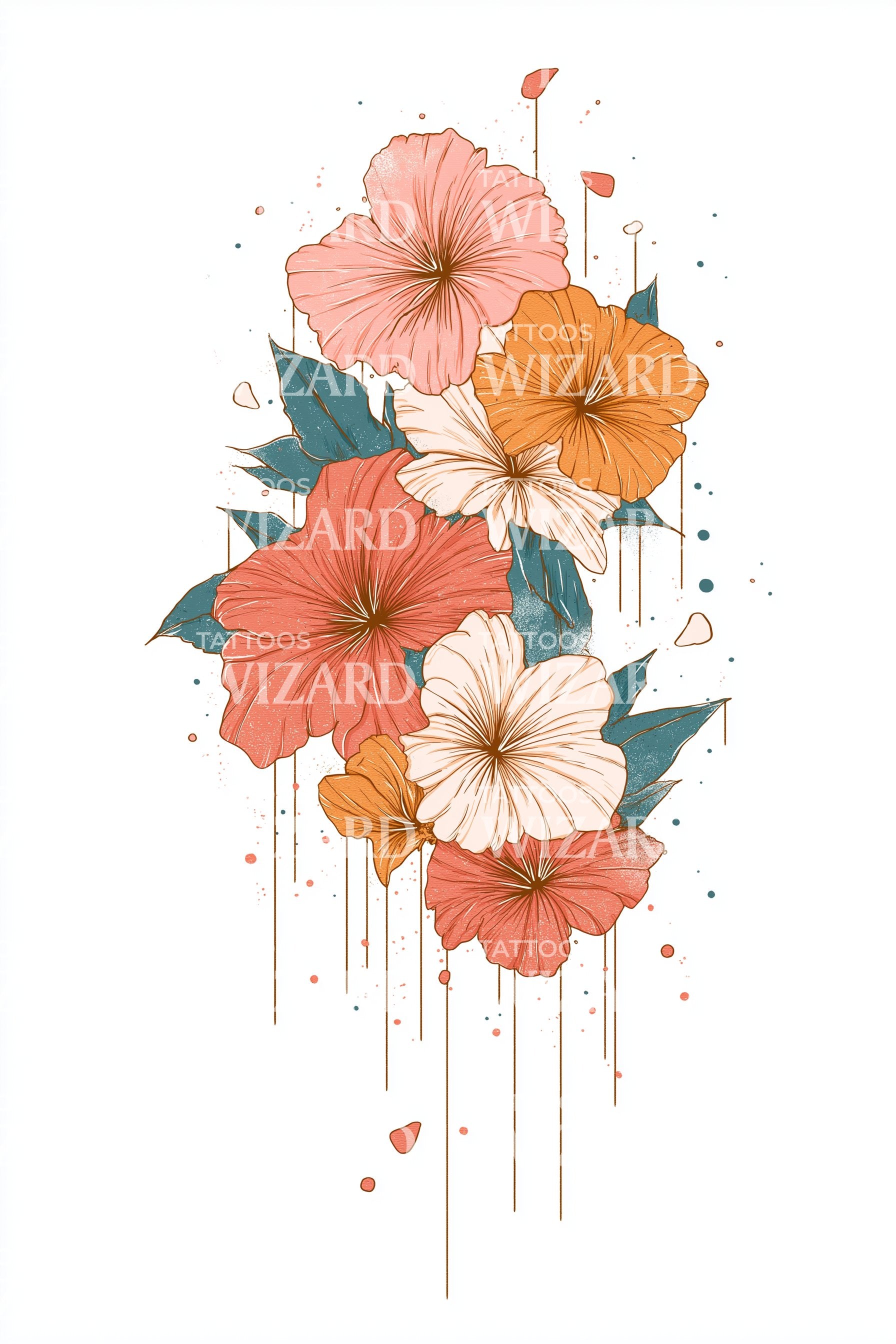 充满女性魅力,这款水彩纹身设计展现了一朵精致的桃花。花卉元素与细腻的水彩滴落相结合,赋予其空灵的魅力,营造出一种异想天开的艺术自然表现。非常适合追求既女性化又大胆的身体艺术爱好者。