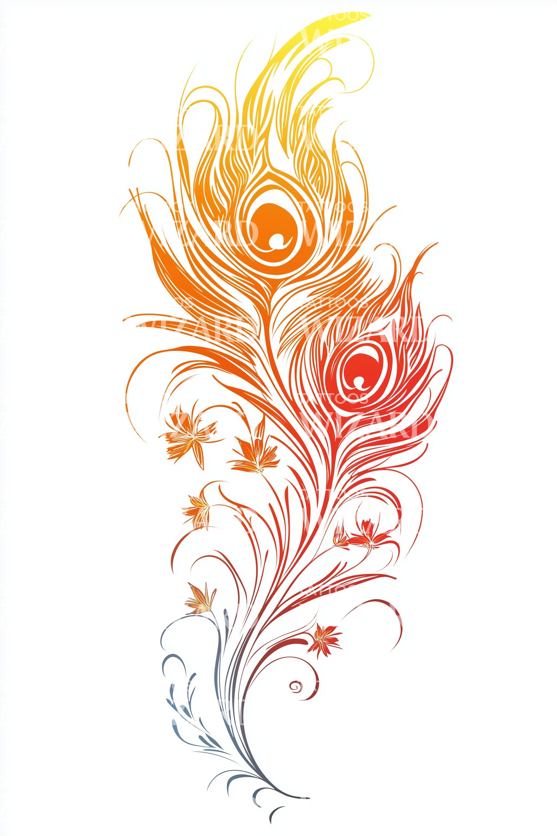 这款精美的纹身设计融合了装饰性的孔雀羽毛、繁盛的螺旋图案和精致的装饰品。迷人的渐变色彩流畅自然,展现出这款纹身的真正美感。勇敢地以这件华丽的身体艺术作品脱颖而出吧。