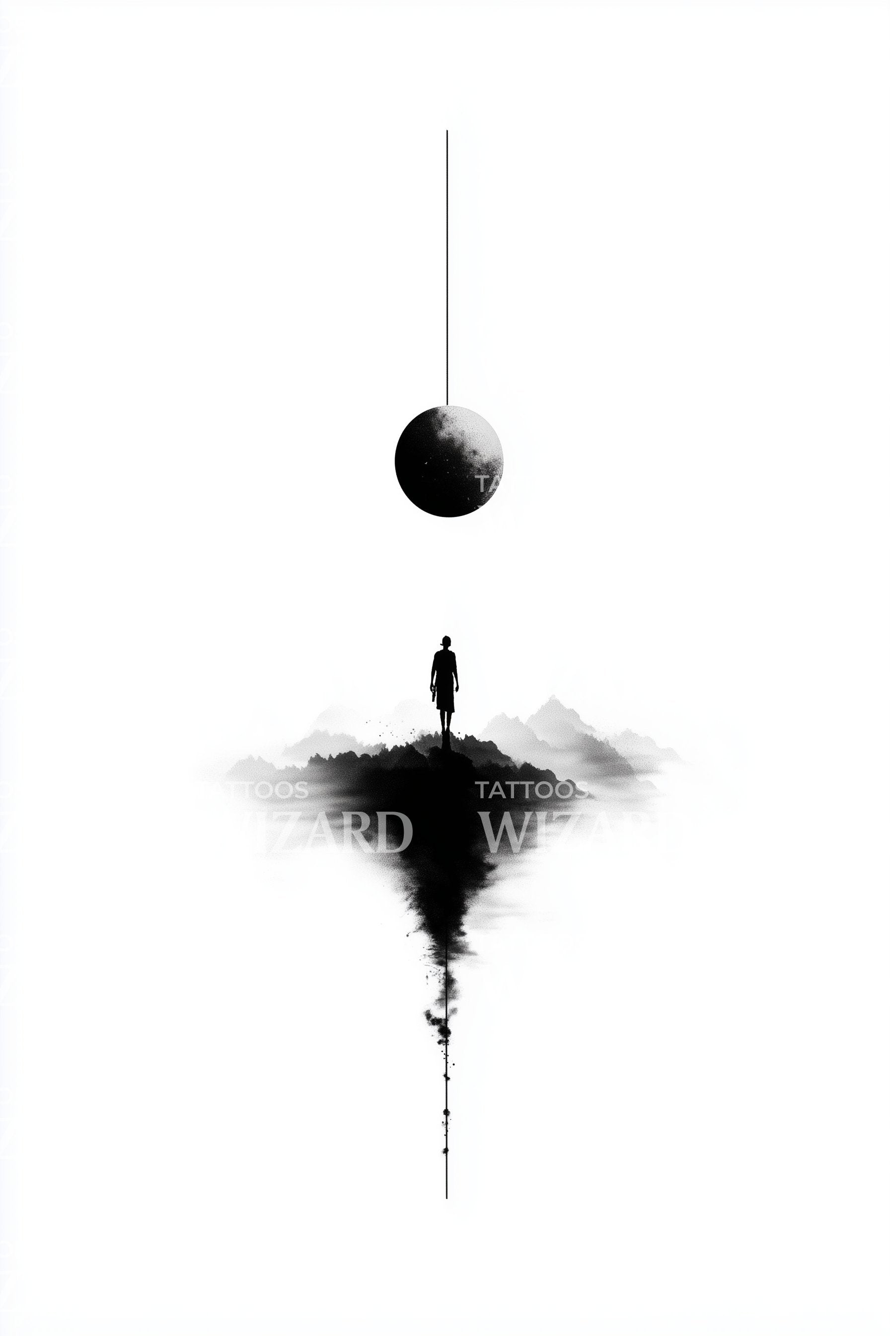 这款极简纹身设计捕捉了孤独冒险者的精神本质。它描绘了一个简单而醒目的身影攀登山峰,象征着对个人成长的不懈追求。其强烈的极简线条唤起深刻的内省与决心感。