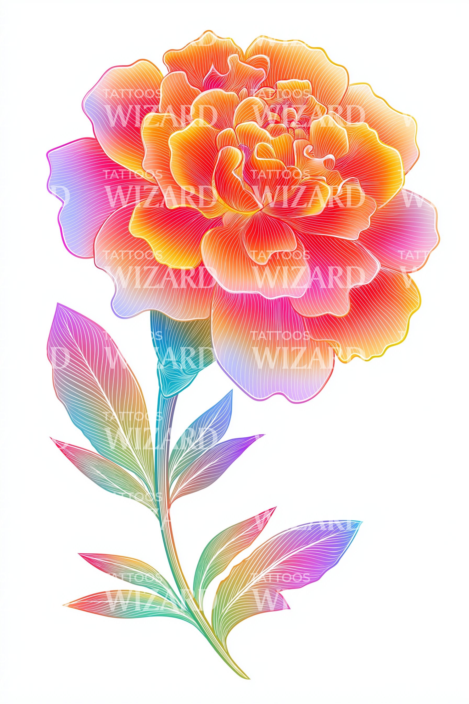 沉浸于这款充满活力的水彩牡丹纹身设计的美学魅力。色彩斑斓,这件多彩作品将花卉的柔美与水彩的抽象流动感完美融合。是追求充满动感植物装饰的您的理想之选。