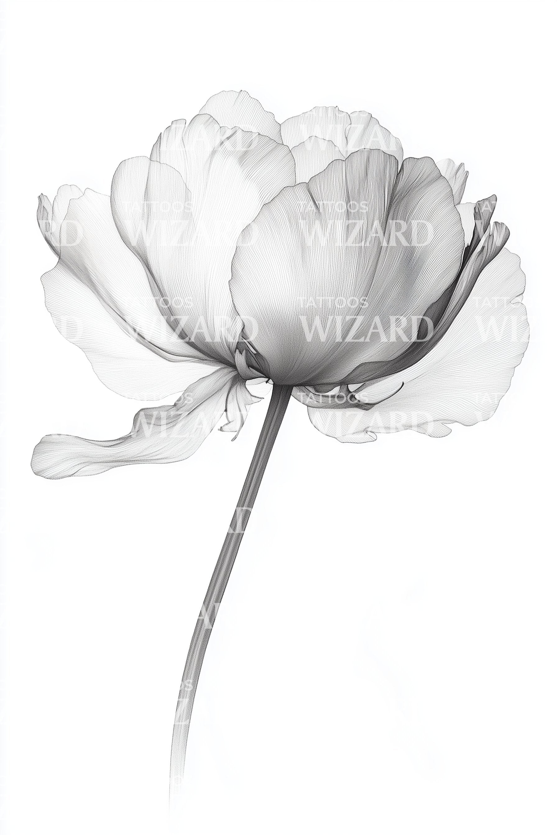一朵优雅的牡丹沿着纤细的茎干绽放,在这款精致的花卉纹身设计中展现。柔和的花瓣与精致的线条共同营造出永恒的花卉图案,适合任何部位。优雅的阴影增添了层次感与女性魅力,使这款多功能作品完美适合极简主义收藏者、浪漫宣言追求者及爱好者。
