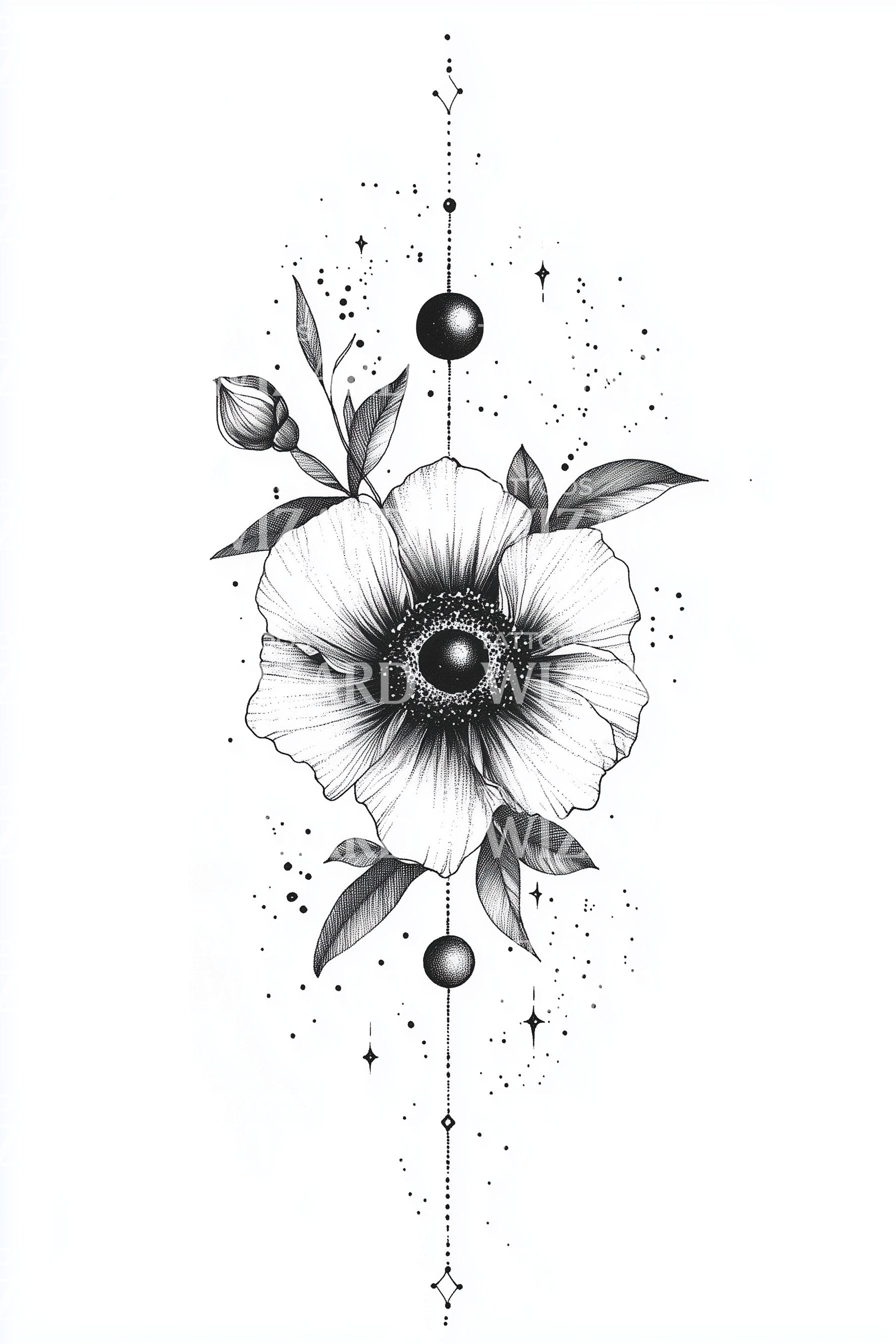 以这款细线纹身设计体现简约与优雅。对称的几何图案与手绘花瓣轮廓交织,营造出迷人的极简美学。这款纹身融合现代感与自然元素,赋予其独特的平衡,完美衬托任何肌肤画布。