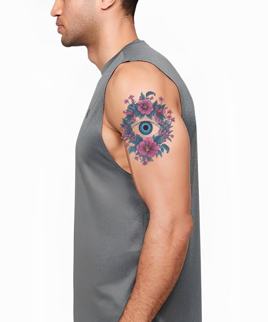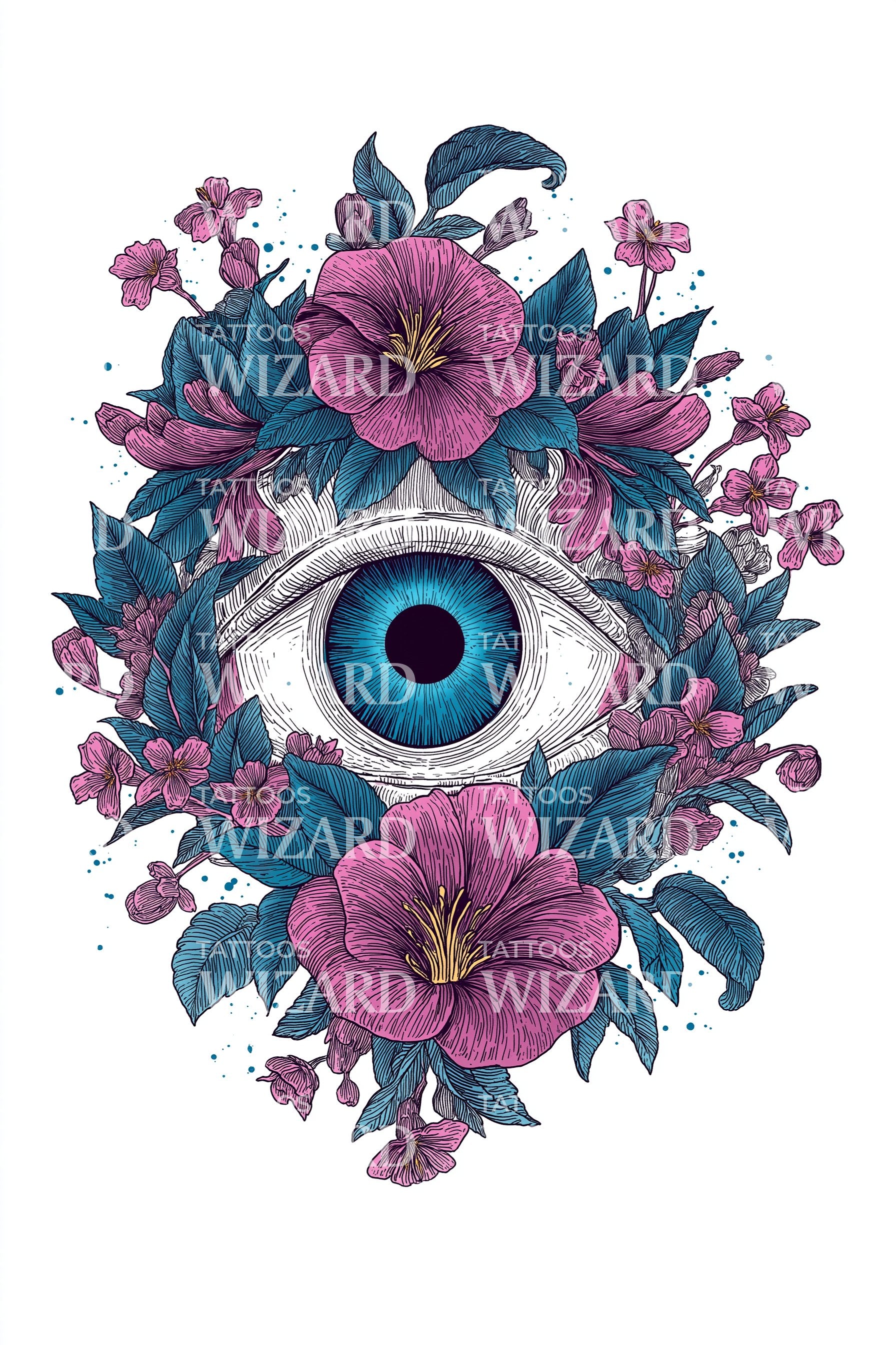 探索我们插画风格纹身设计的迷人魅力。将眼睛的深刻象征意义与花瓣的细腻脆弱相结合,配以装饰性的光环框架,这件作品捕捉了绽放中的难以捉摸的视野。非常适合欣赏大自然之美与视觉神秘感的您。