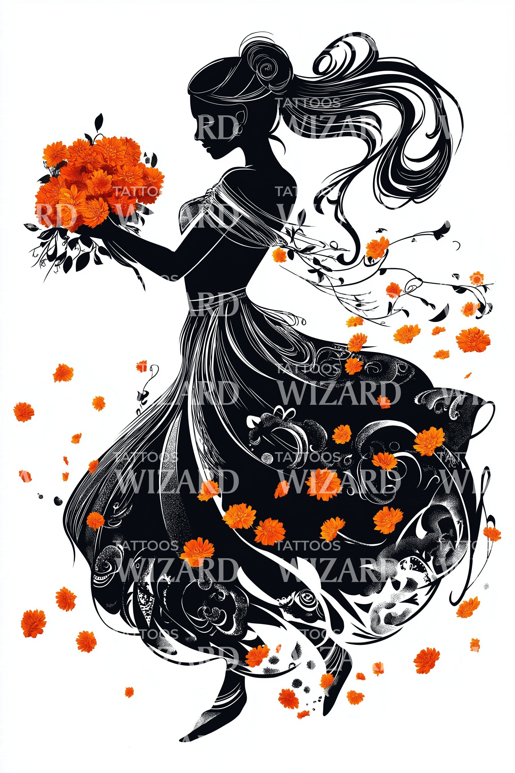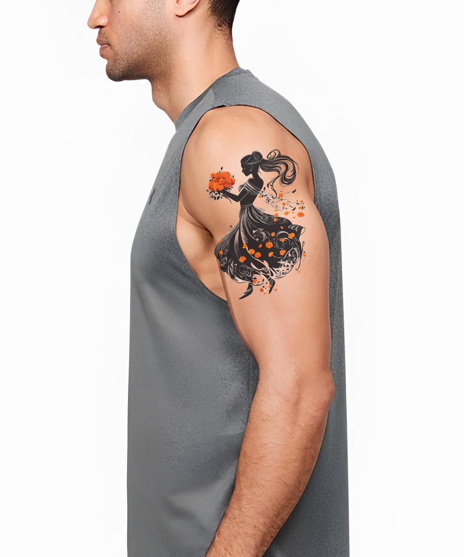 深入探索这款水彩纹身设计中的浪漫波西米亚风情。描绘了一位在花瓣与旋涡中舞动的吉普赛女子,艺术地捕捉了对自由旅行的渴望与女性力量的精髓。这件作品是自由精神的美丽体现,也是对女性气质的赞颂。非常适合艺术爱好者。