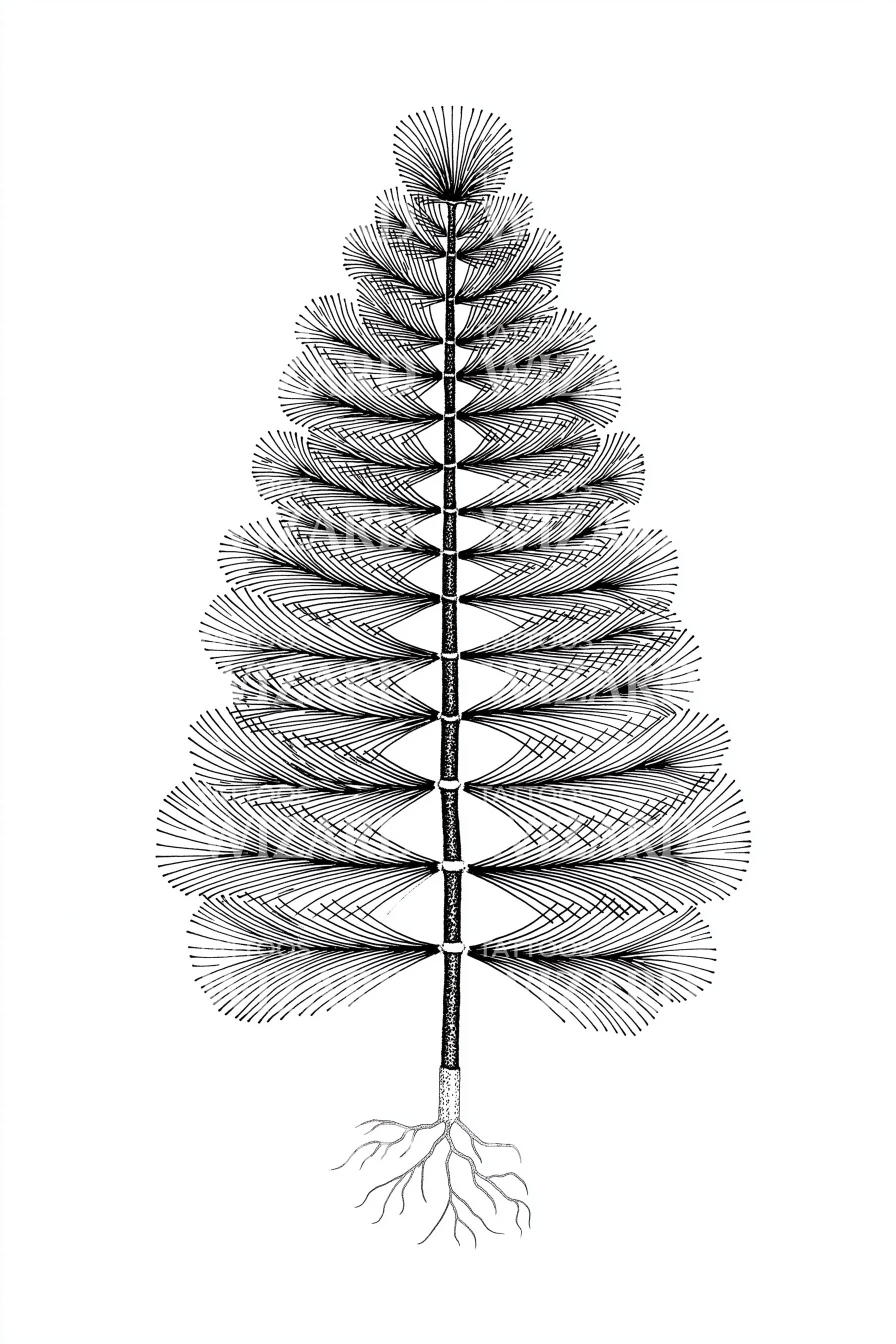 Pine prayer in dotwork, a botanical vow of balance: reach without losing yourself. Roots hold the quiet parts that built you, symmetry reminds you to return to center when life tilts. Drawn to those who lead softly, choosing steadiness over noise. Needlelight teaches the storm to rhyme.