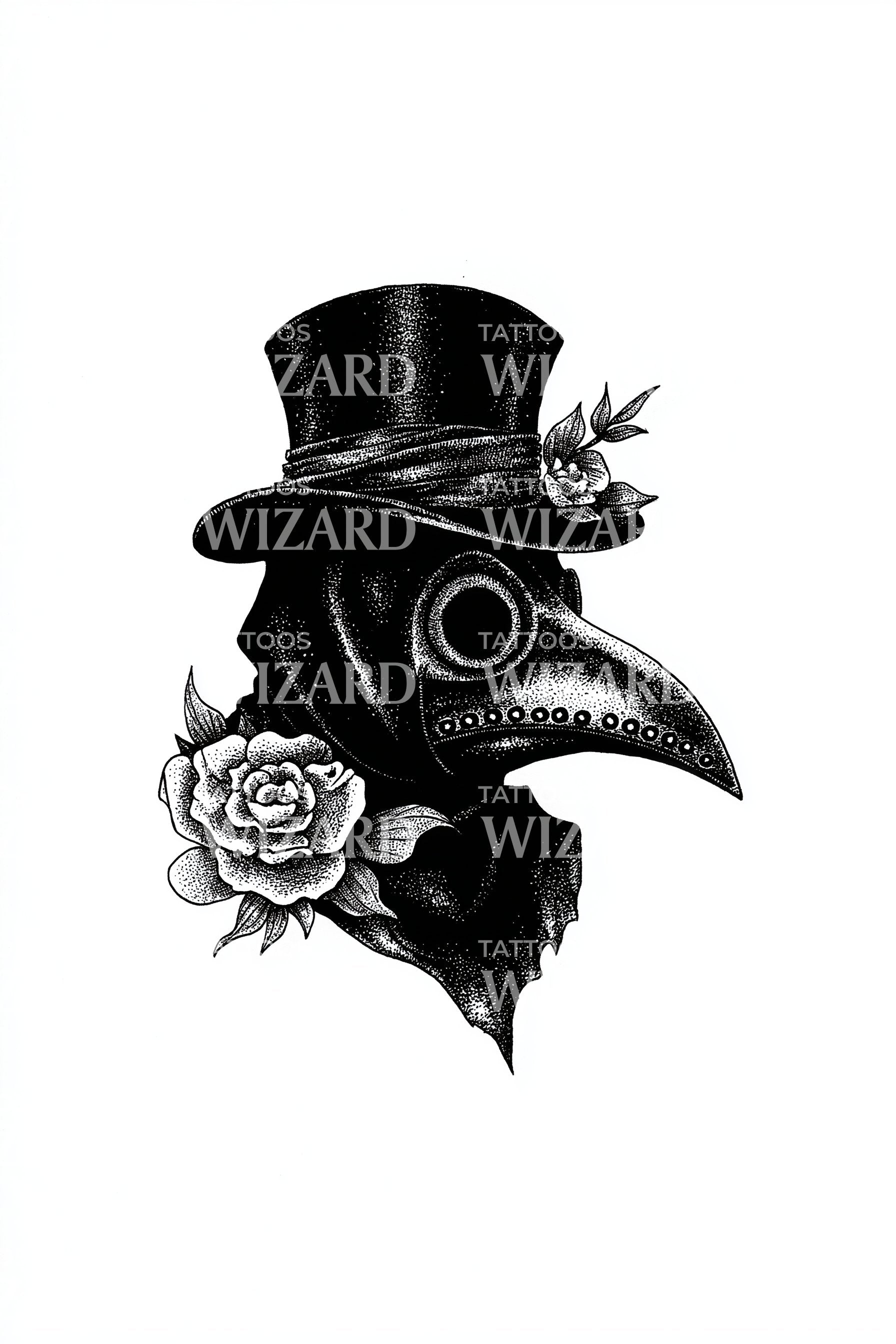 沉浸于历史的神秘氛围中,体验我们哥特风格的瘟疫医生纹身设计。此设计以复杂的维多利亚细节精心打造,展现出神秘的医生面具,唤起无声的故事与悠远的古韵。这是对历史上戏剧性时刻的迷人致敬。