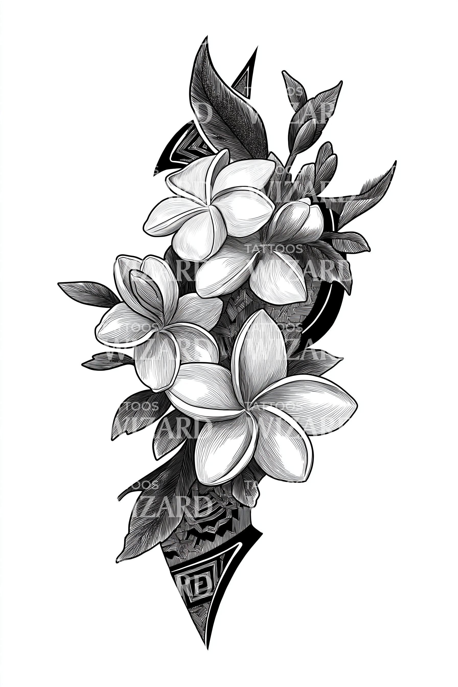 拥抱你内心的战士,这款波利尼西亚部落纹身设计。精心设计的夹竹桃花簇和箭头图案,将部落美学与令人惊叹的自然元素融合,打造出一件具有深远影响力的作品,展现出进化且现代的部落表达。