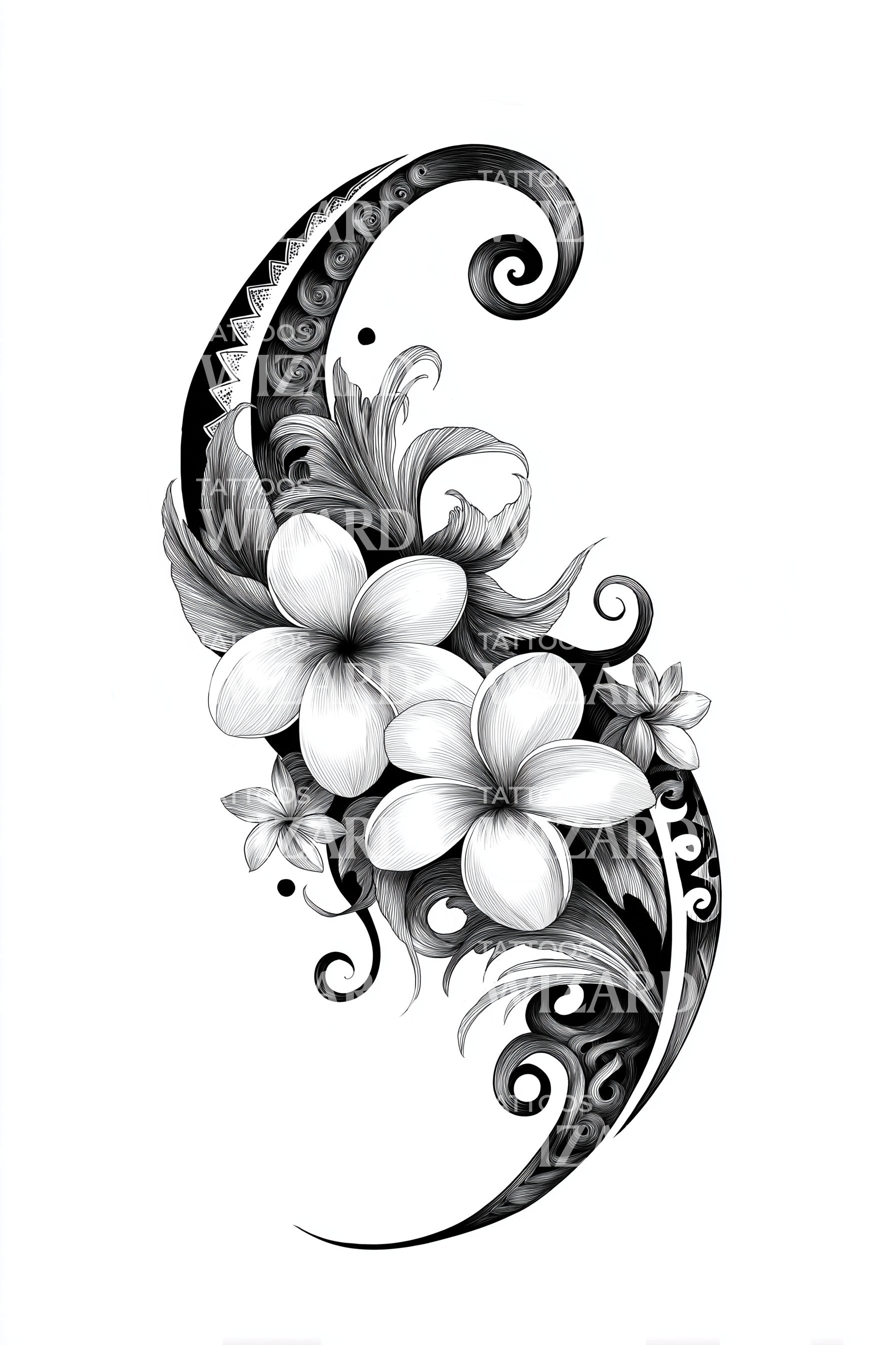 体验自然与艺术的完美融合,这款引人入胜的黑灰纹身设计巧妙地结合了部落佩斯利旋涡、华丽的鸡蛋花和醒目的花卉图案。它是优雅与凶猛的化身,完美适合具有前瞻思维的你。