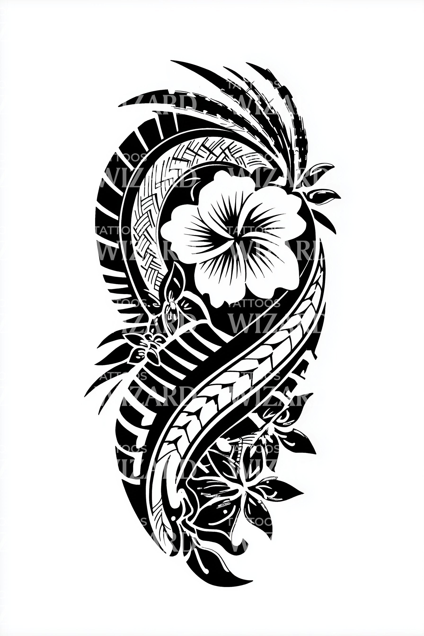 波利尼西亚扶桑花旋涡纹身设计