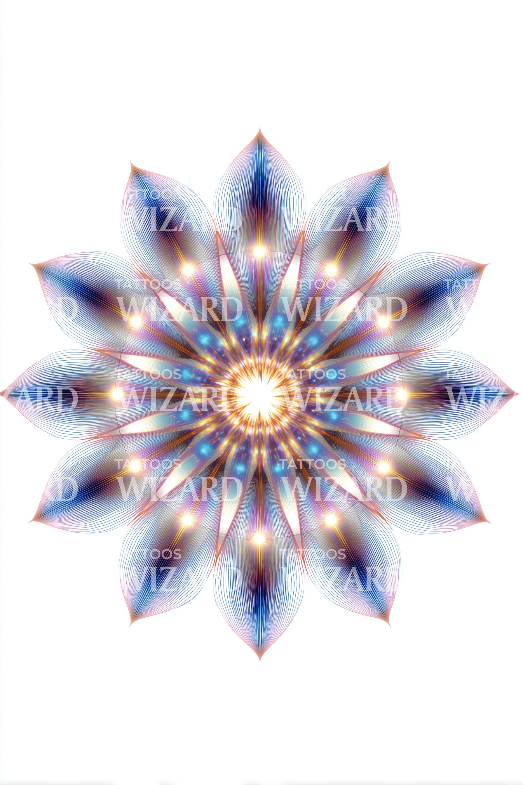 释放你内心的精神,这款迷人的曼陀罗纹身设计。绚丽的彩虹色彩迸发,展现神圣的棱镜能量。它象征着宇宙的平衡与宁静,是宇宙的象征。拥抱这幅令人着迷的曼陀罗杰作所带来的精神能量。