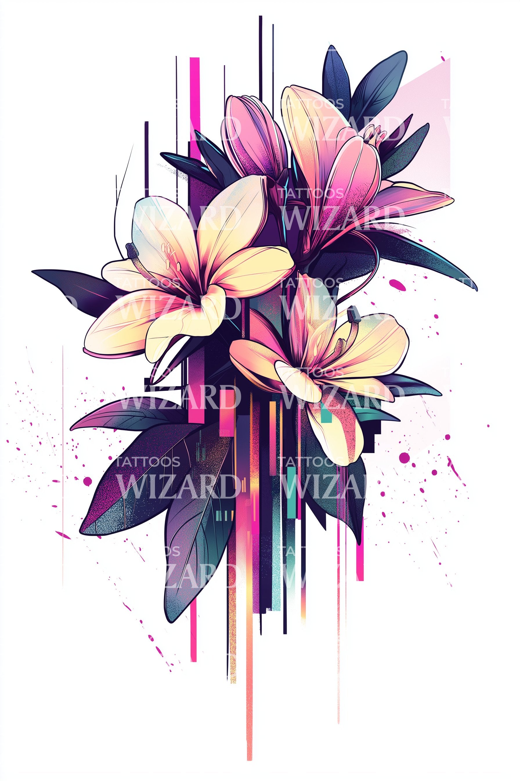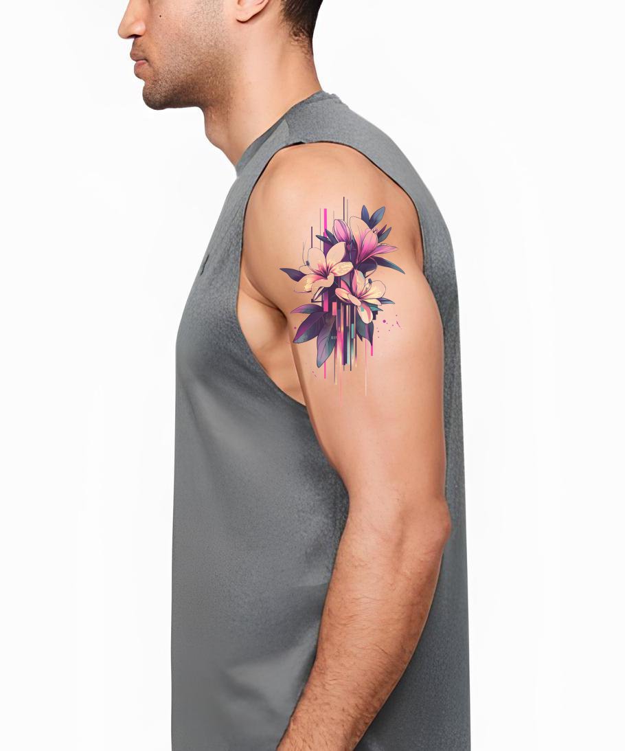 沉浸于这款水彩鸡蛋花花束纹身设计中绚丽色彩的完美融合。它通过鲜艳的笔触捕捉花卉的精髓,营造出令人惊叹的视觉盛宴。对于热爱色彩的人来说,这款设计展现了大自然馈赠的丰富、生动且无可否认的美丽。
