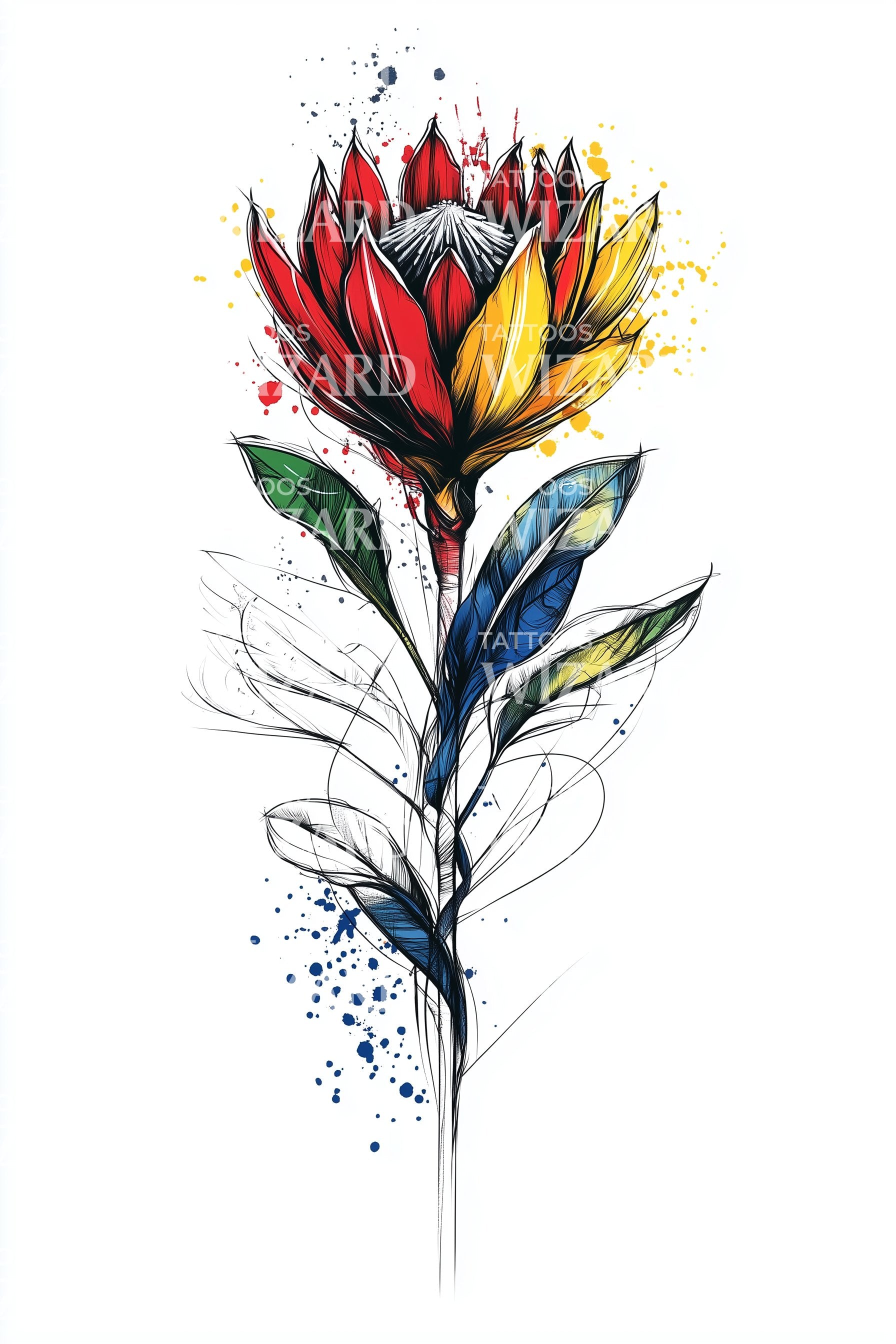 体验南非生机勃勃的美丽,这款植物学风格的银莲花纹身设计。采用细腻的水彩渲染和素描风格的花茎,这一设计将大自然的魅力与阳光的鲜艳色彩完美融合,打造出一件无可否认的惊艳作品,专为那些被旅行渴望驱动的人而创作。