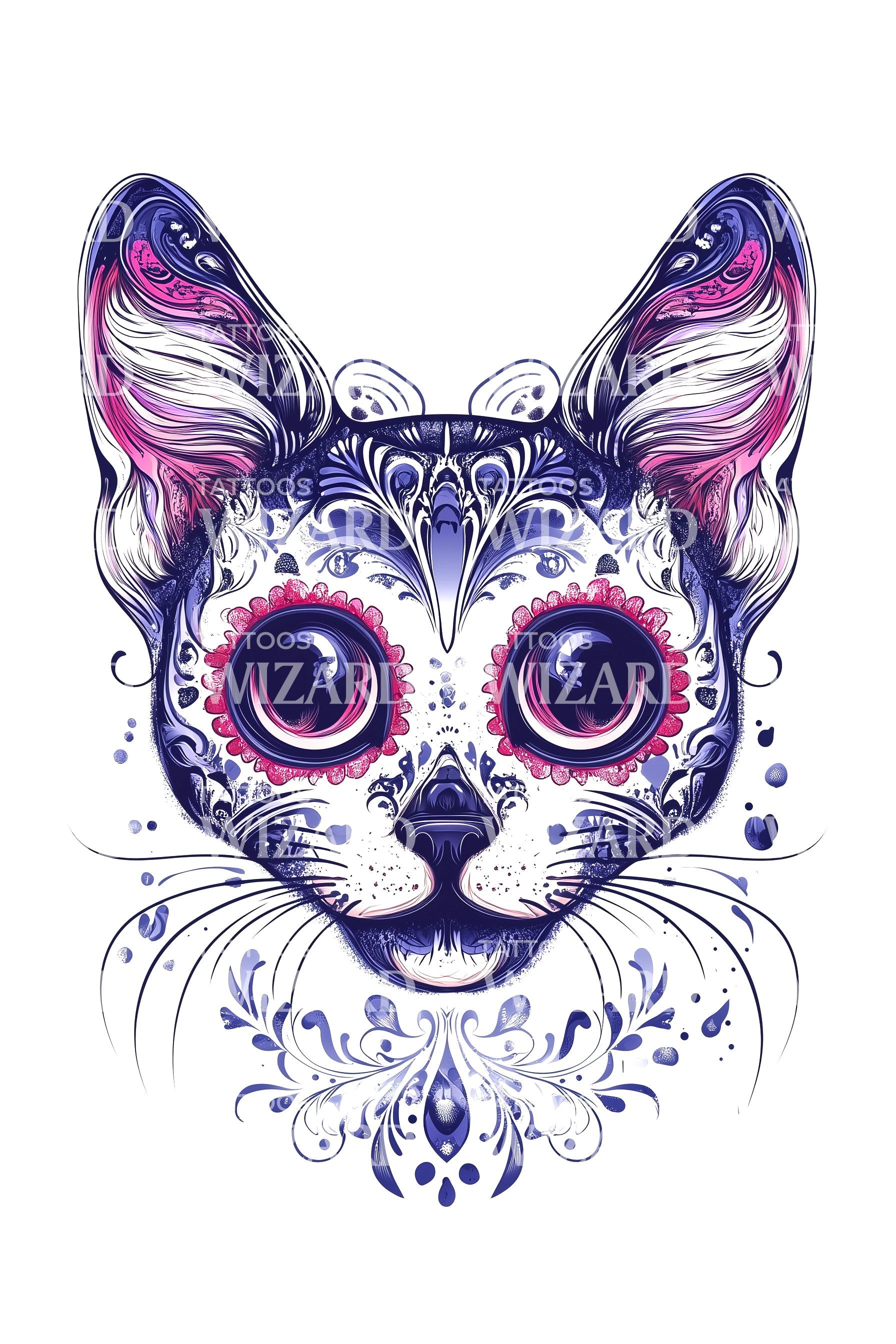 Purple Ornate Cat Face Tattoo Illustration