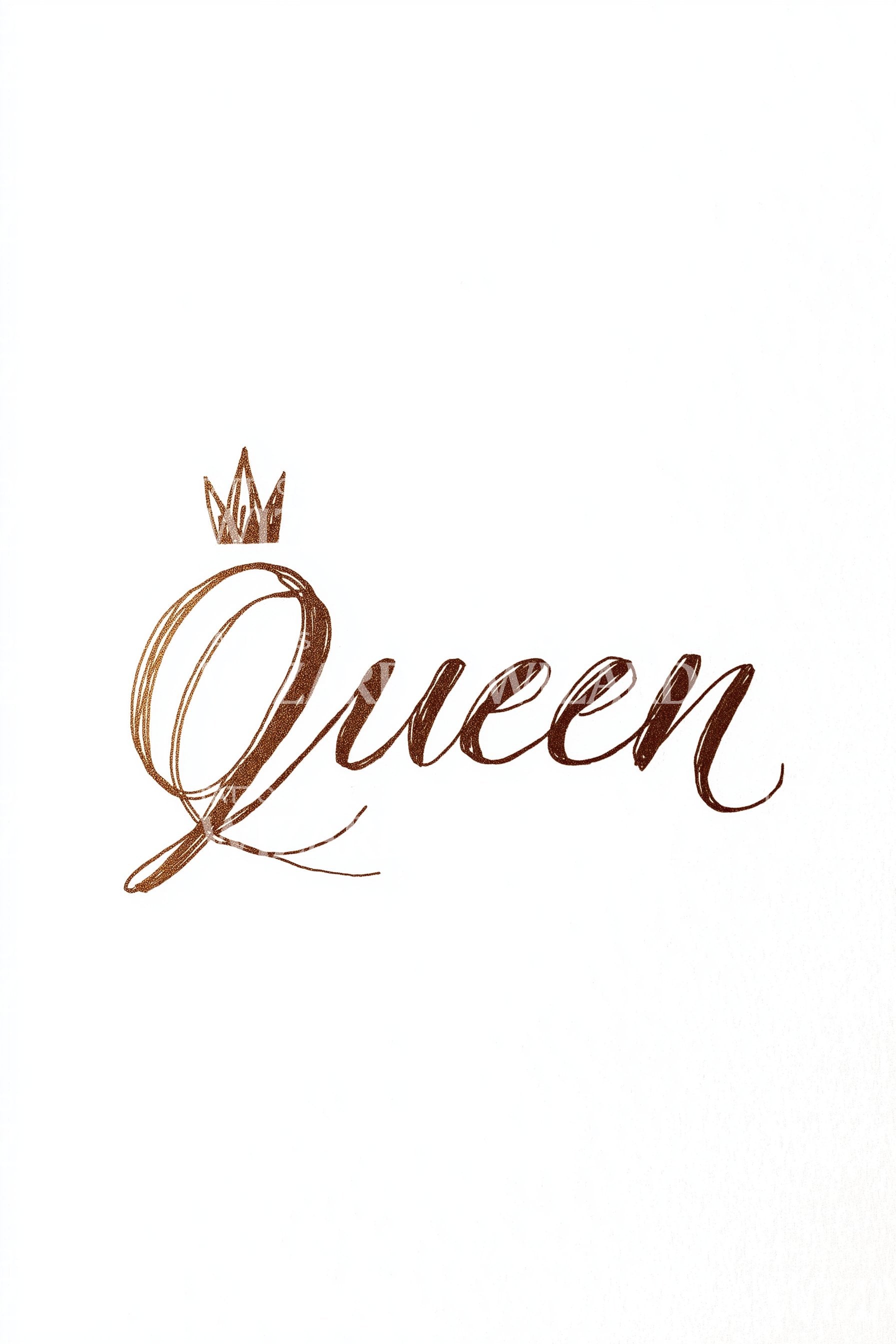 Fineline script flows into a sweeping Q, tipped with a delicate crown. Minimal yet luxurious, the word Queen celebrates sovereignty, grace, and feminine resilience. This wearable affirmation whispers elegance, inviting poise, self-worth, and quiet power to rise. Perfect for daily royalty, intimate and timeless. A personal, radiant statement.