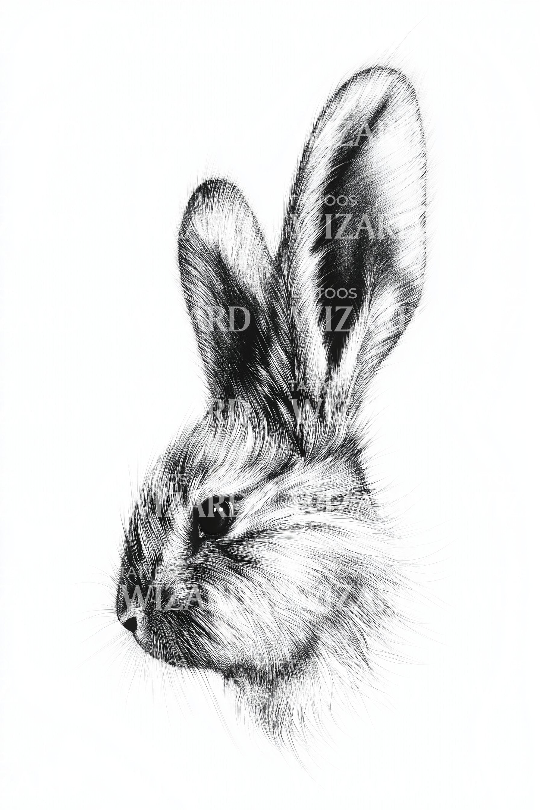 Fineline profile of a rabbit, rendered in airy strokes, with luminous eye, delicate whiskers, and a tall, attentive ear. This gentle creature embodies intuition, renewal, and soft strength. Wearing it feels like carrying quiet courage and quicksilver grace, a reminder to listen closely and leap lightly.