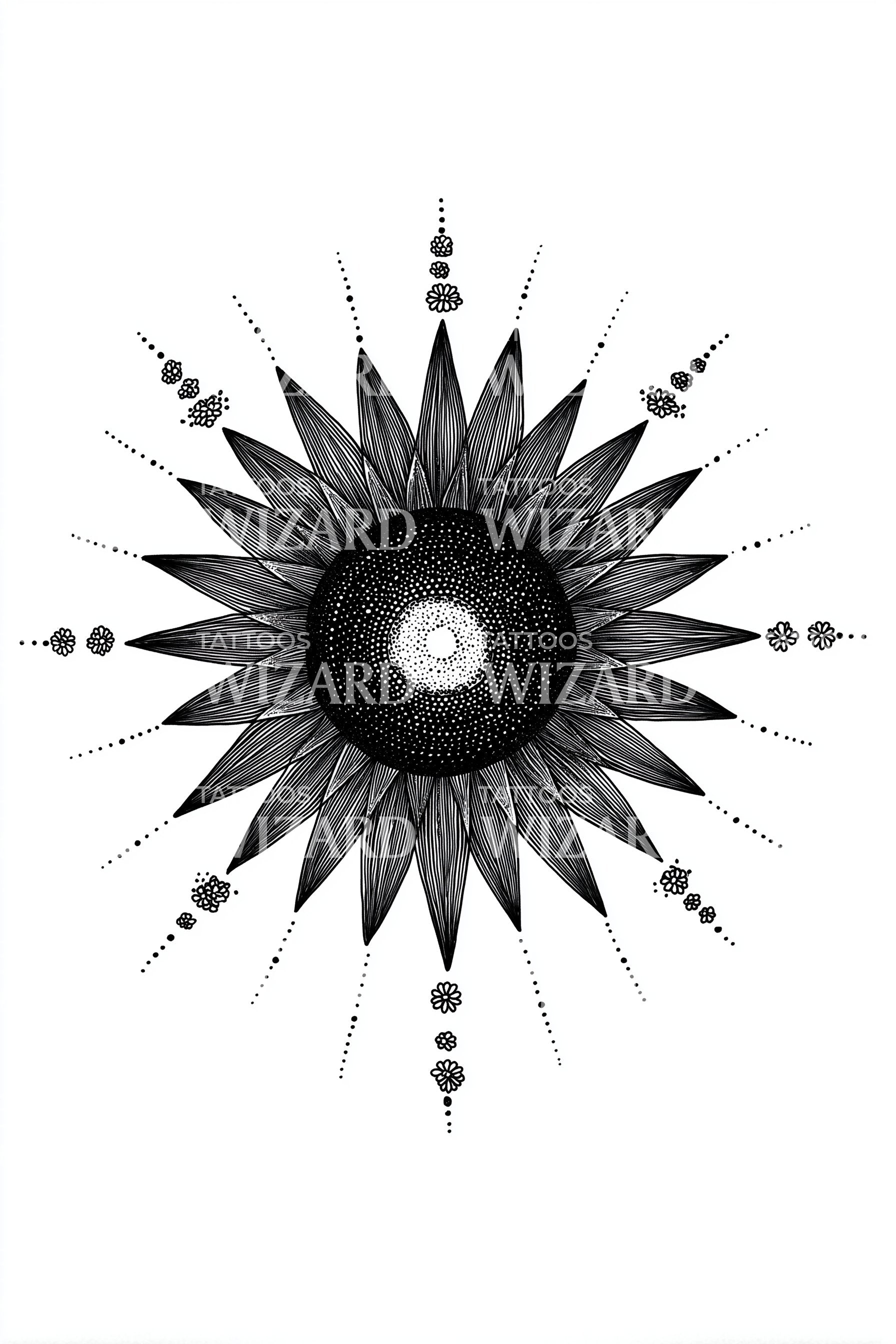 沉浸于这款光辉曼陀罗纹身设计的神圣几何之中。灵感源自日光爆发图案,其复杂细节象征着能量与平衡。这款精心打造的光辉曼陀罗纹身设计,为佩戴者带来灵性连接的氛围。一件超越肤浅的艺术作品。